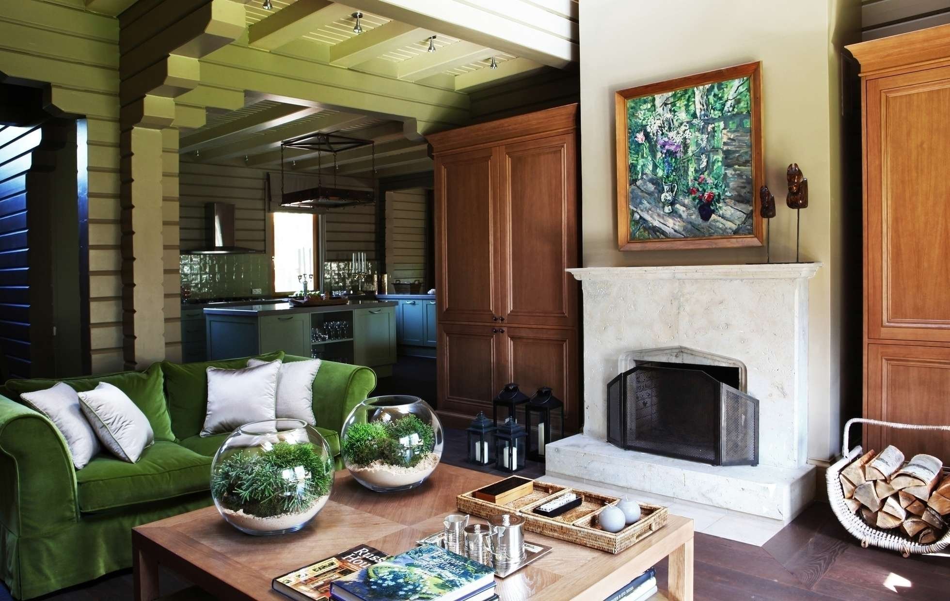 Зеленый камин в интерьере