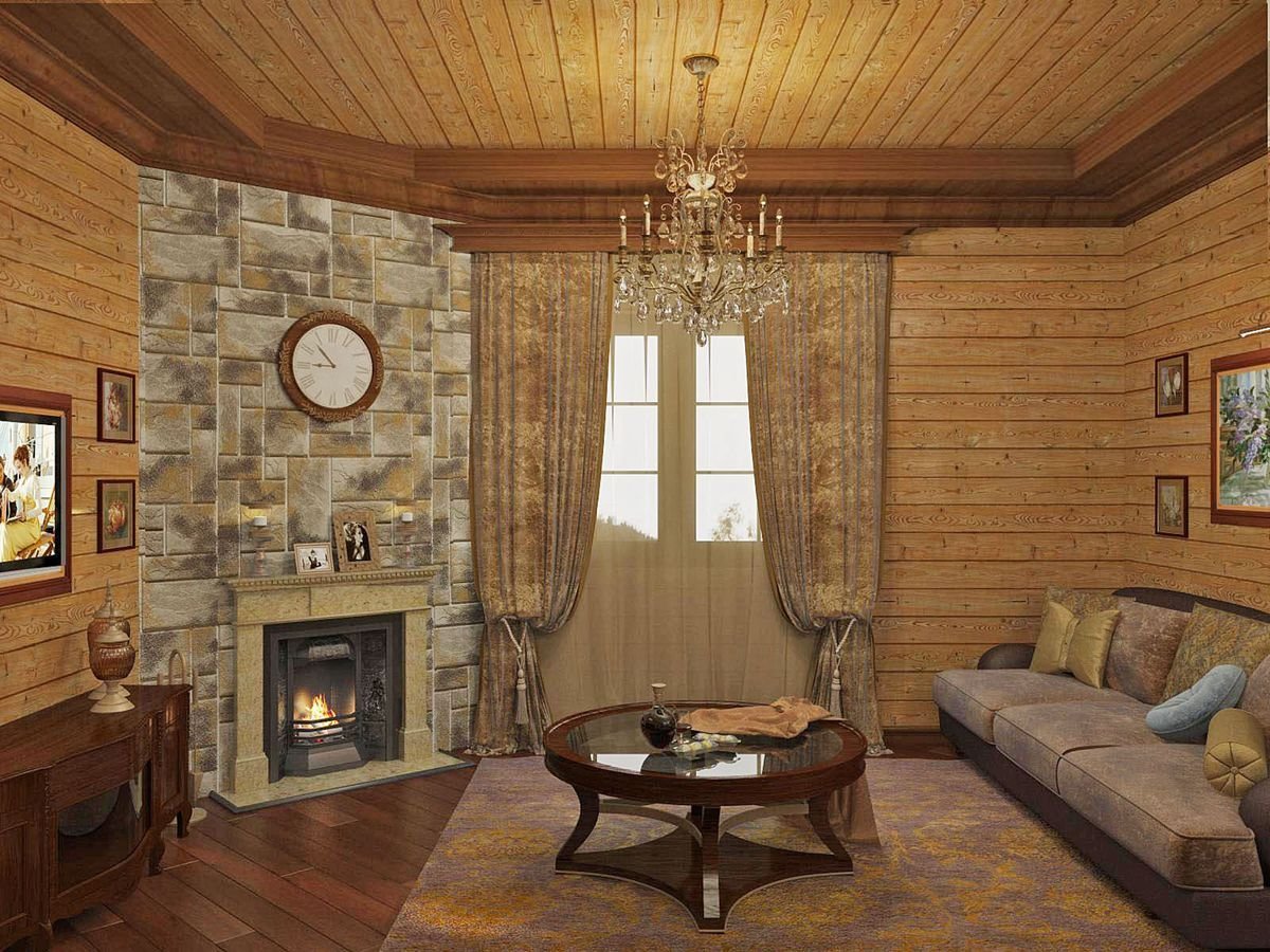 Интерьеры гостинной деревянных домов