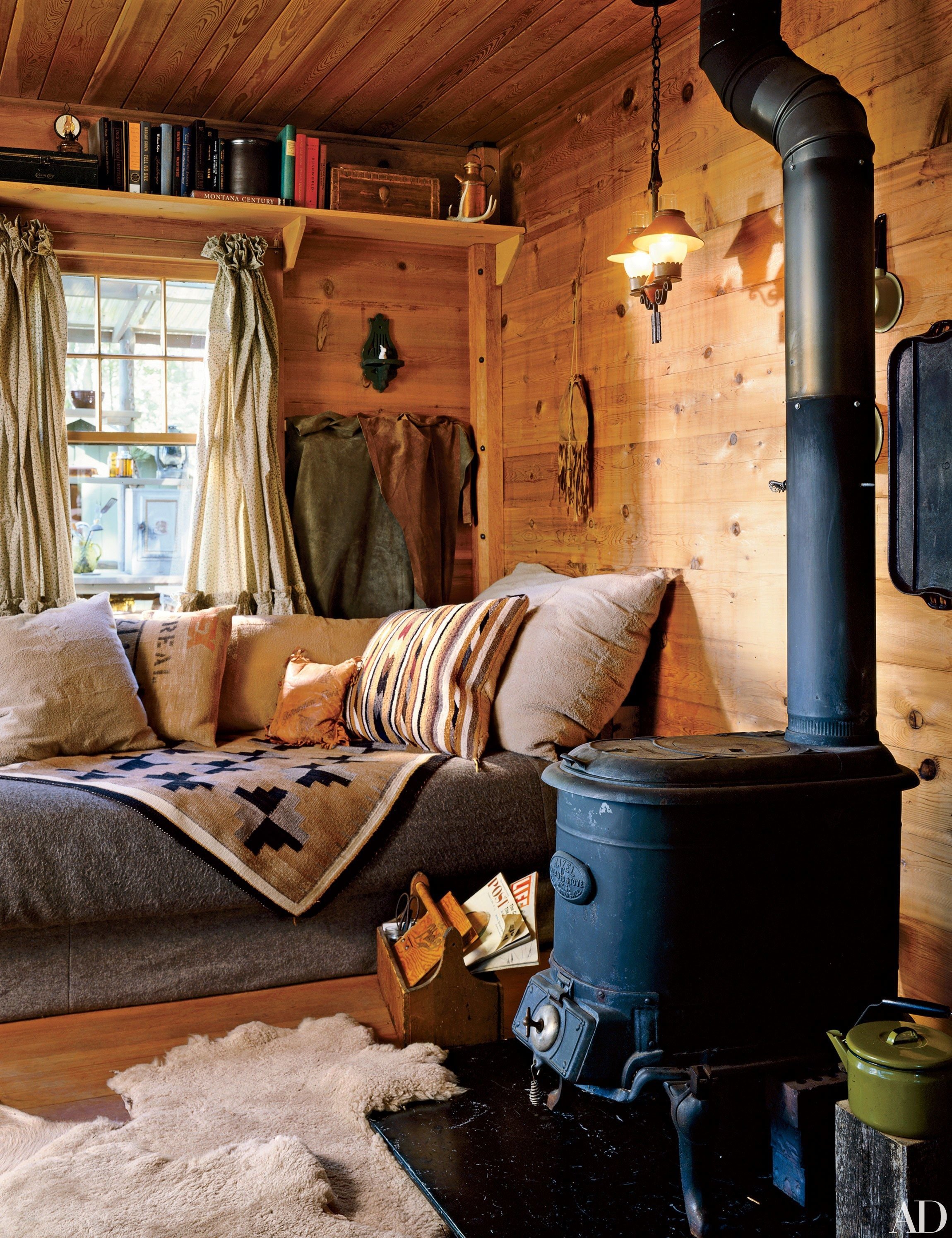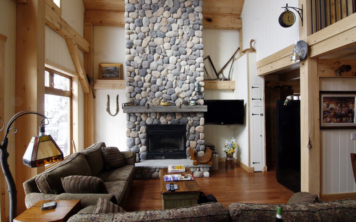 Дизайн комнаты с печкой на даче