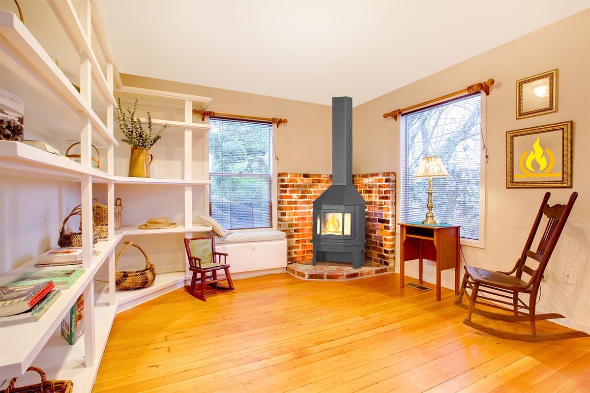 Интерьер комнаты с печкой