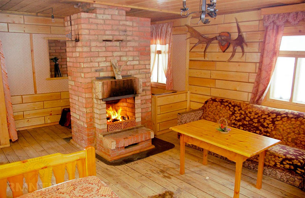Интерьер деревянного дома с печкой