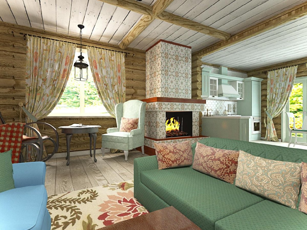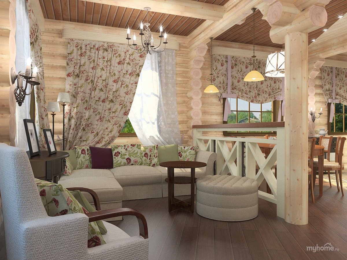 Деревянный дом в стиле Прованс внутри