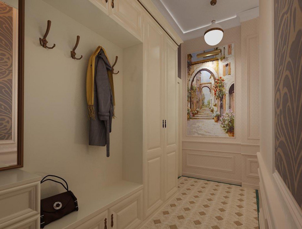 Интерьер длинной узкой прихожей классика