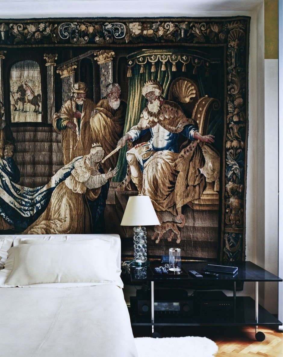 Гобелен в интерьере спальни