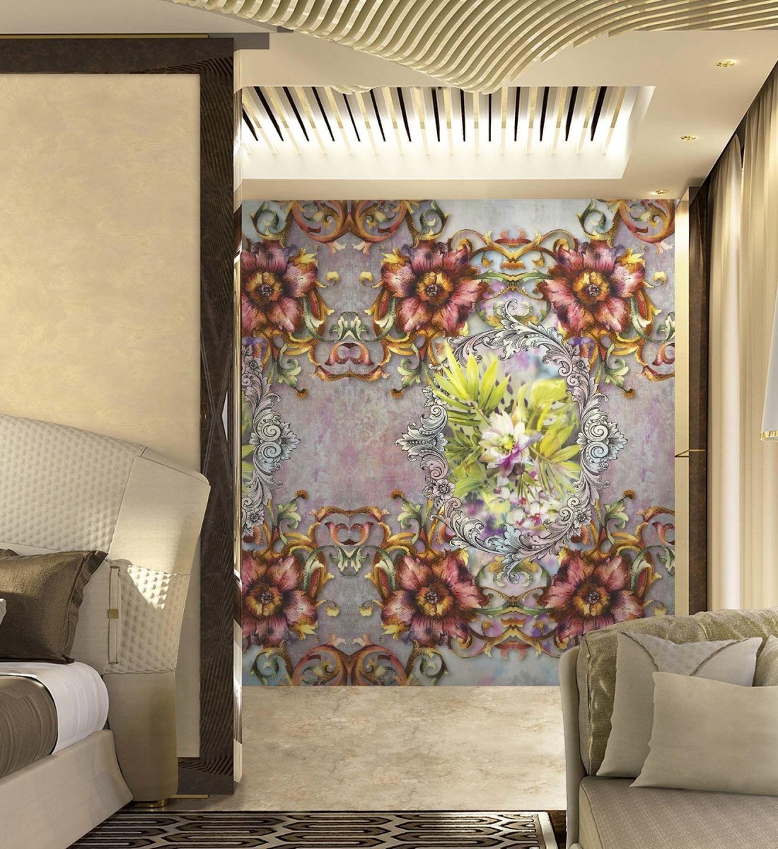 Цветочные обои в спальне