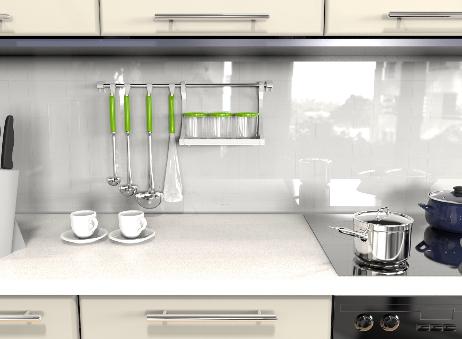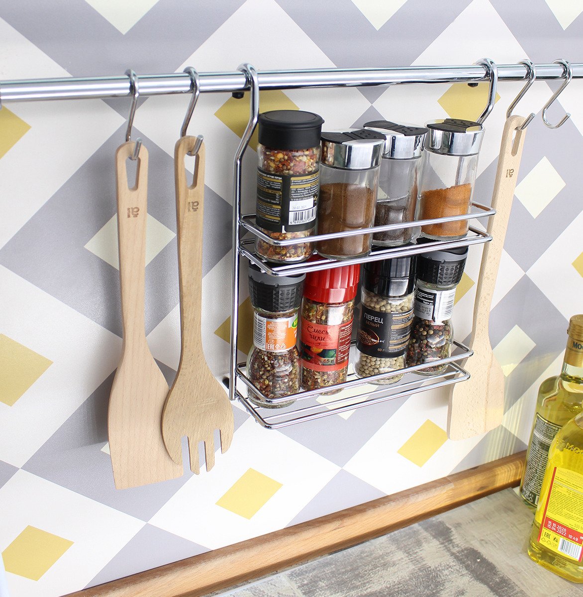 Рейлинги на кухне над плитой