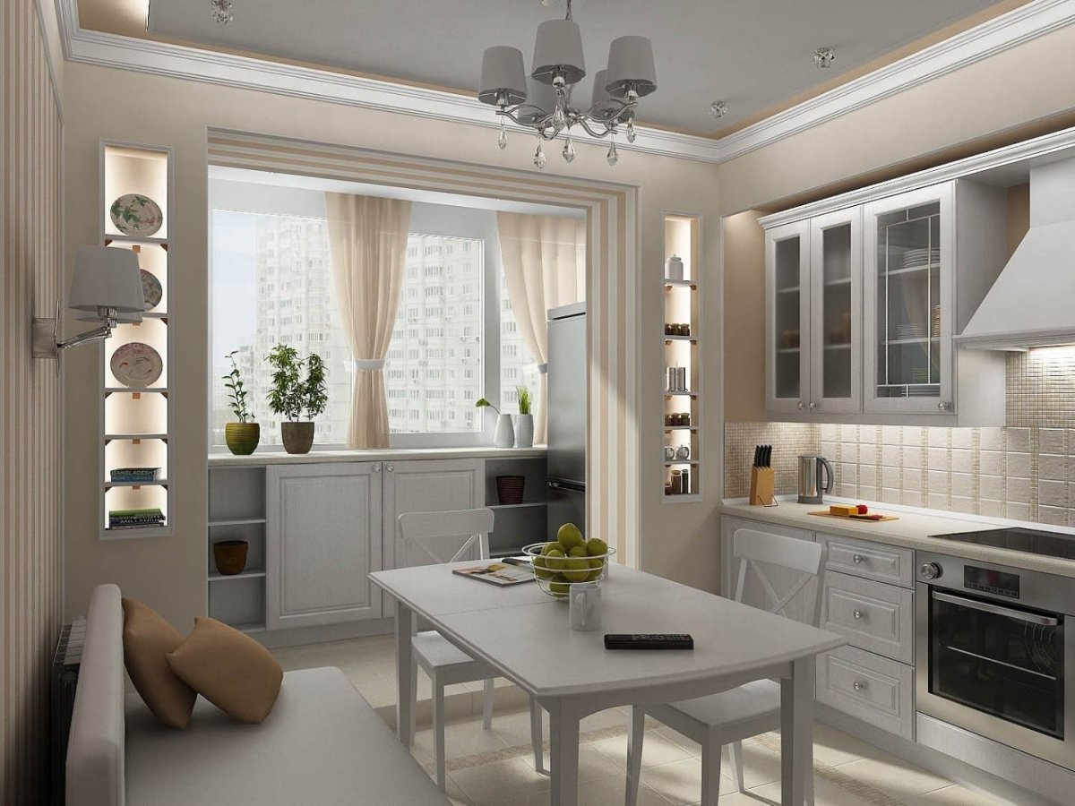 Интерьер кухни 11м2 с выходом на балкон