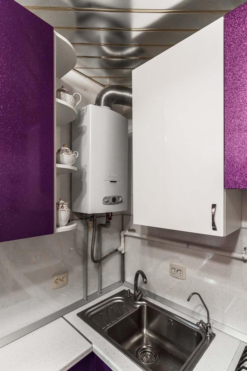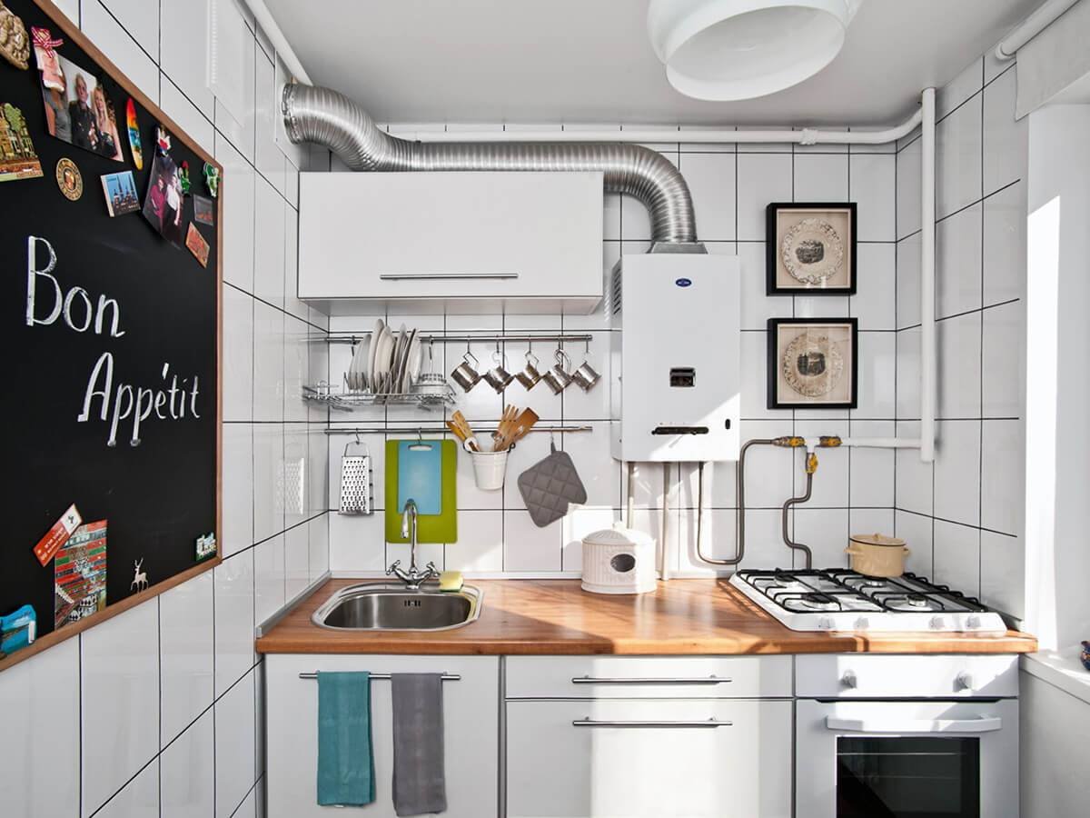 Кухня для маленькой кухни в хрущевке с ГАЗ колонкой