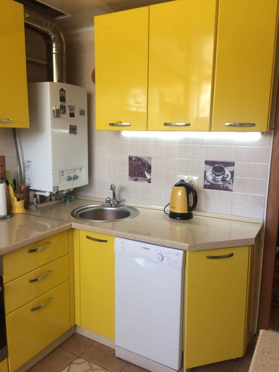 Кухонный гарнитур для маленькой кухни с газовой колонкой