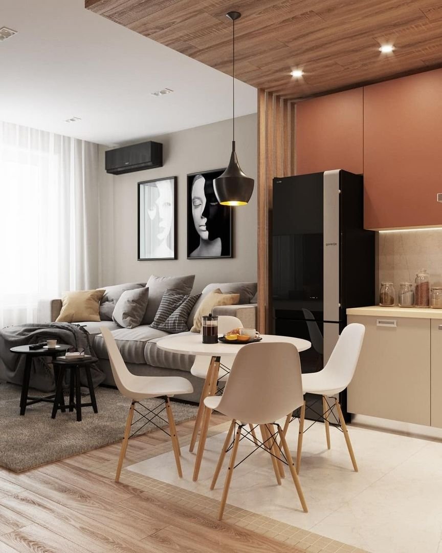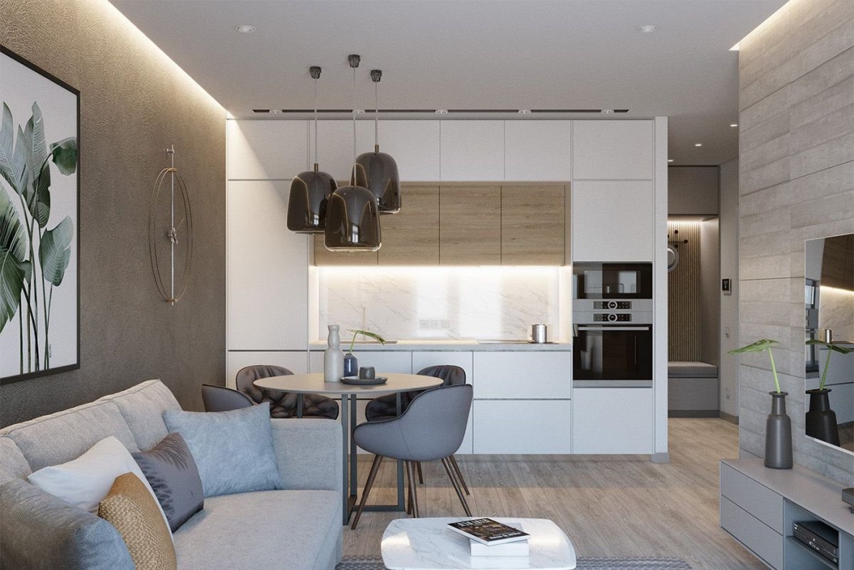 Кухня гостиная в небольшой студии