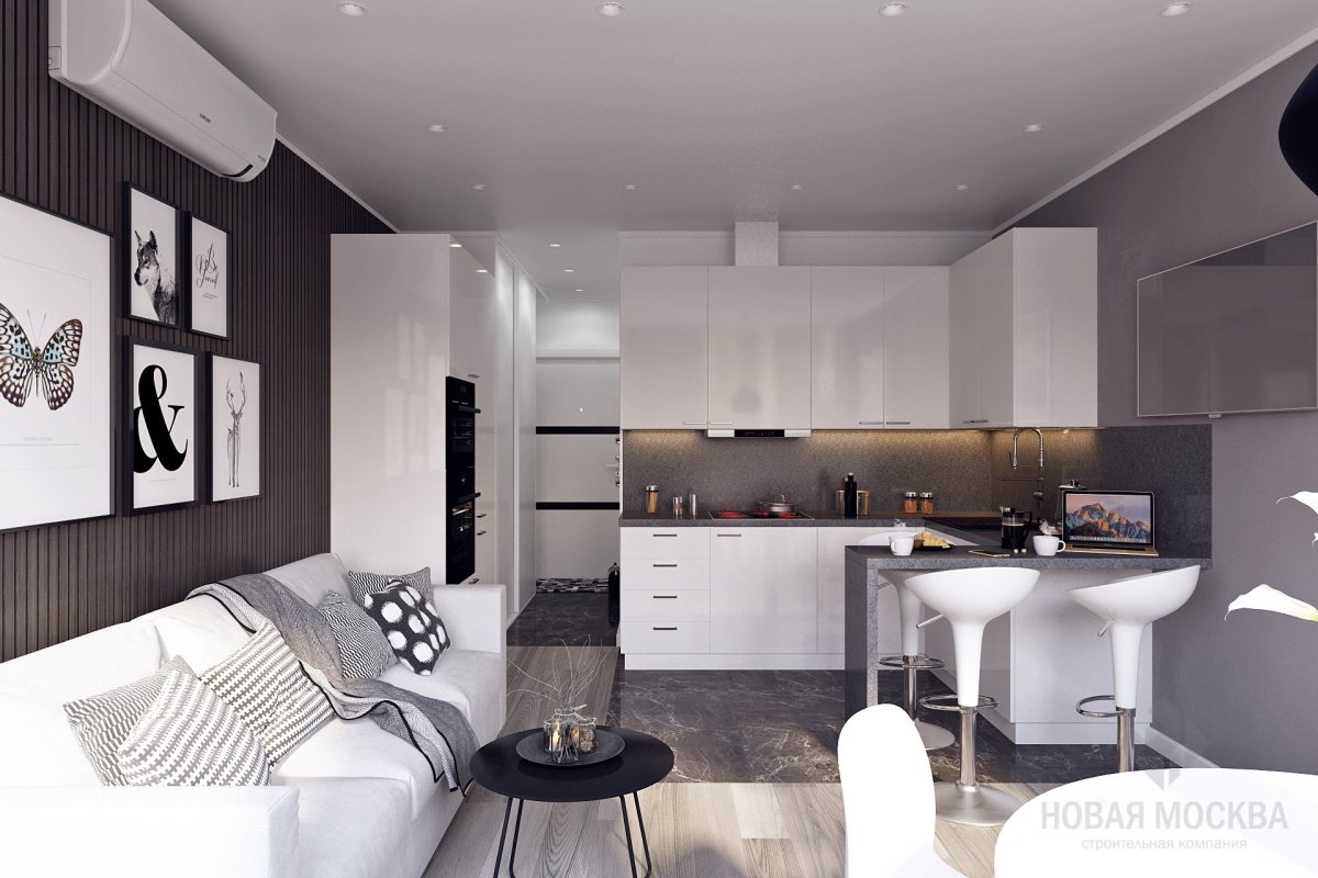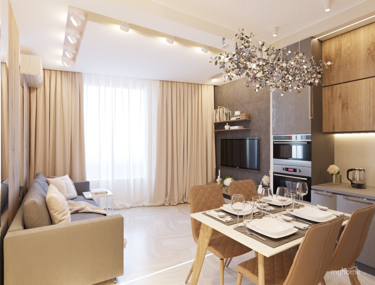 Евродвушка пик дизайн кухни-гостиной