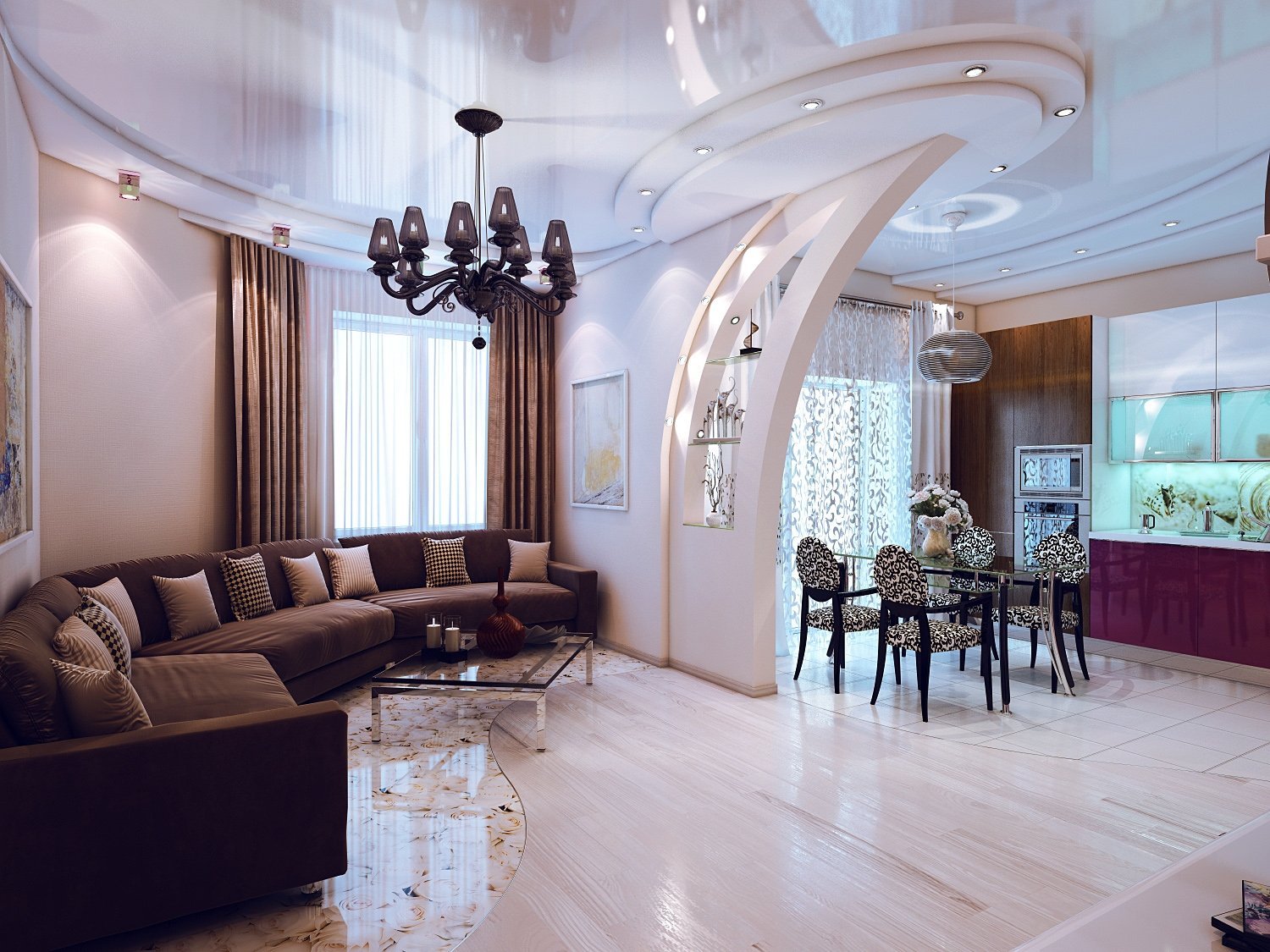 Шикарные гостиные с кухней