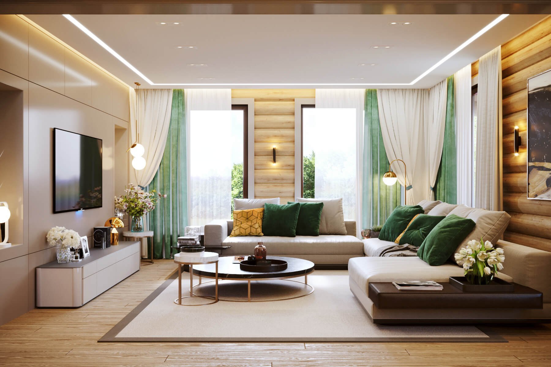 Лучший современный дизайн гостиной загородного дома