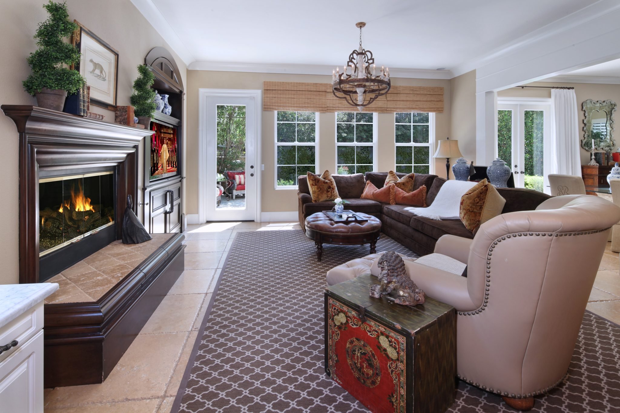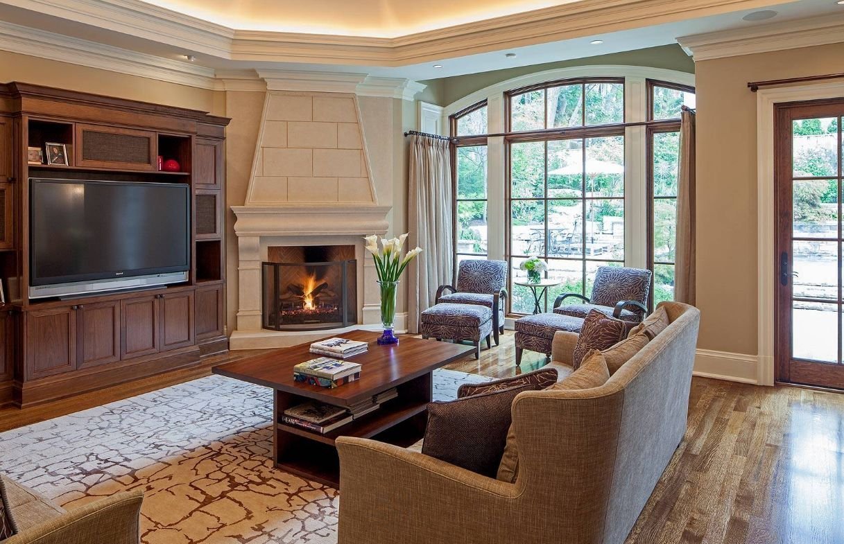 Стильная гостиная с камином