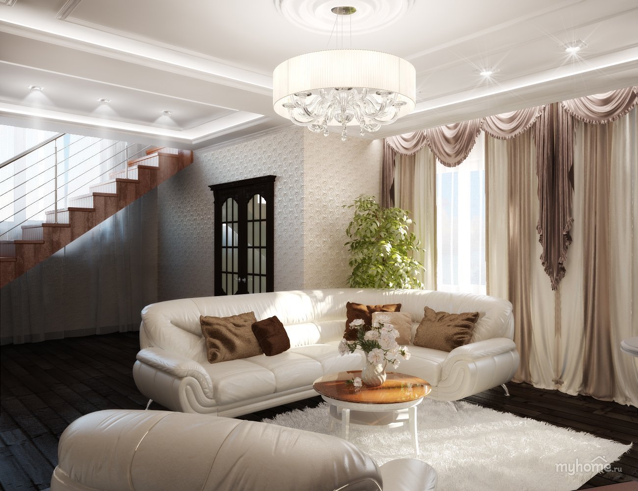 Гостиная с лестницей