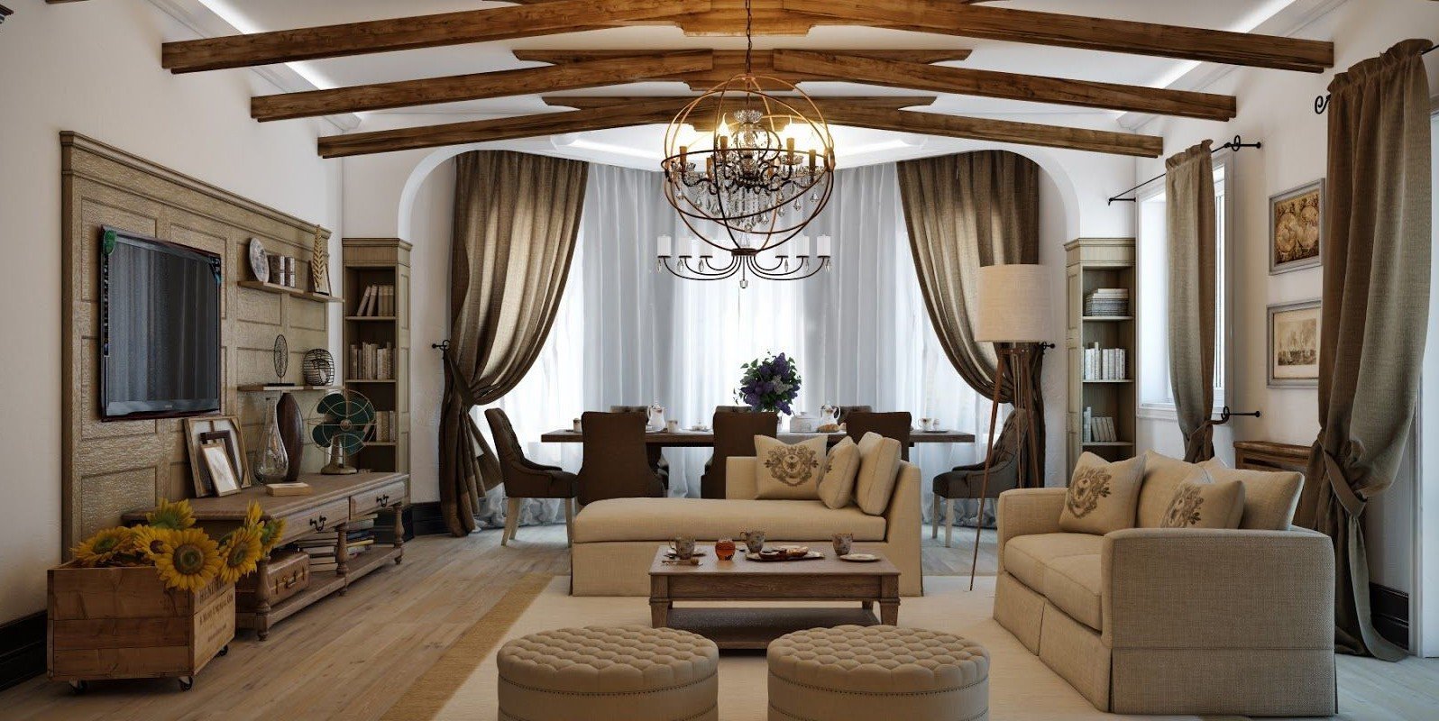 Бежевый интерьер гостиной