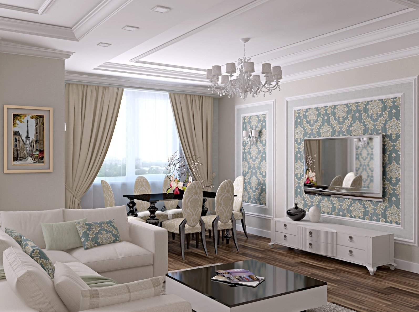 Гостиная в стиле Неоклассика в светлых тонах