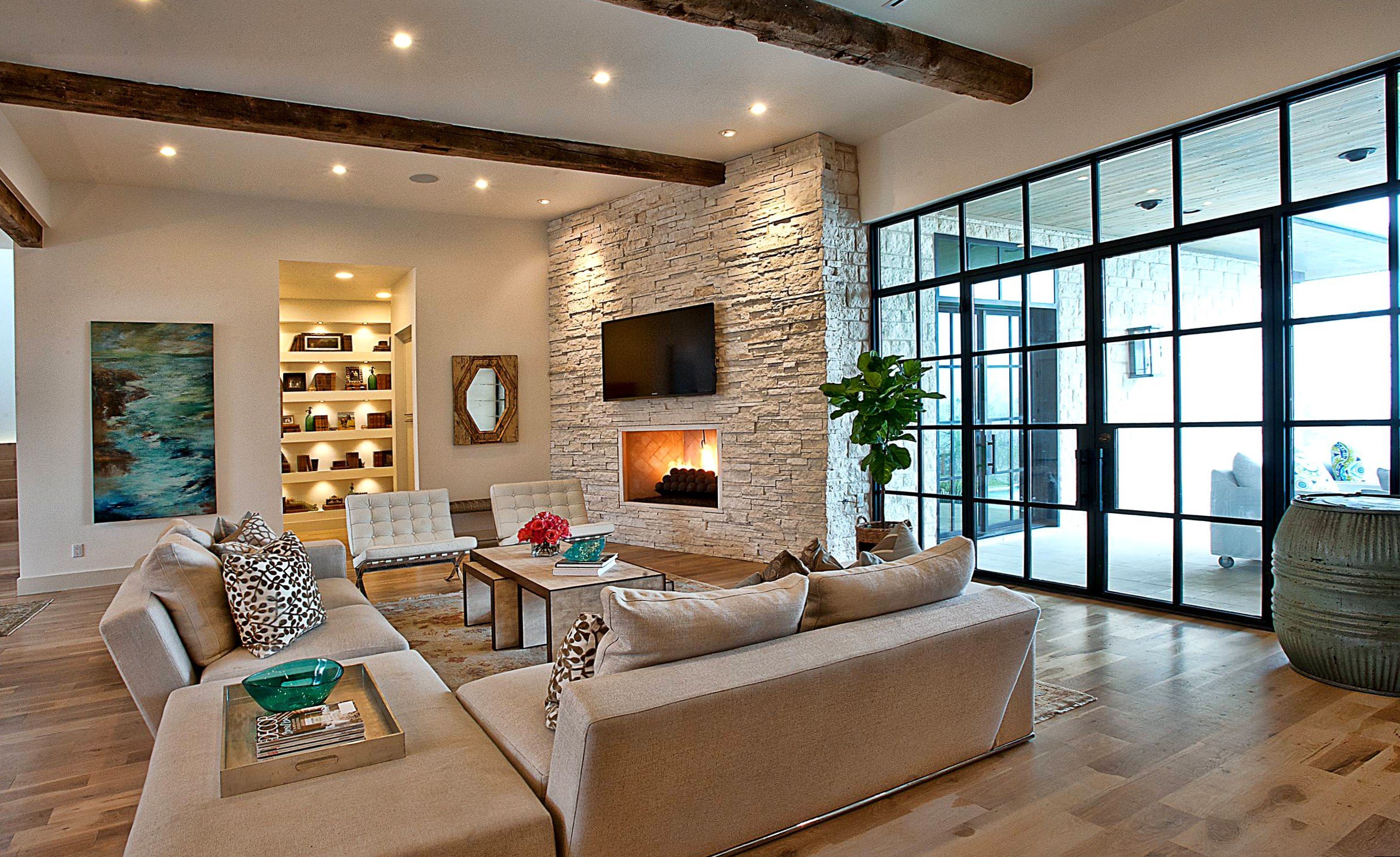 Отделка гостиной камнем