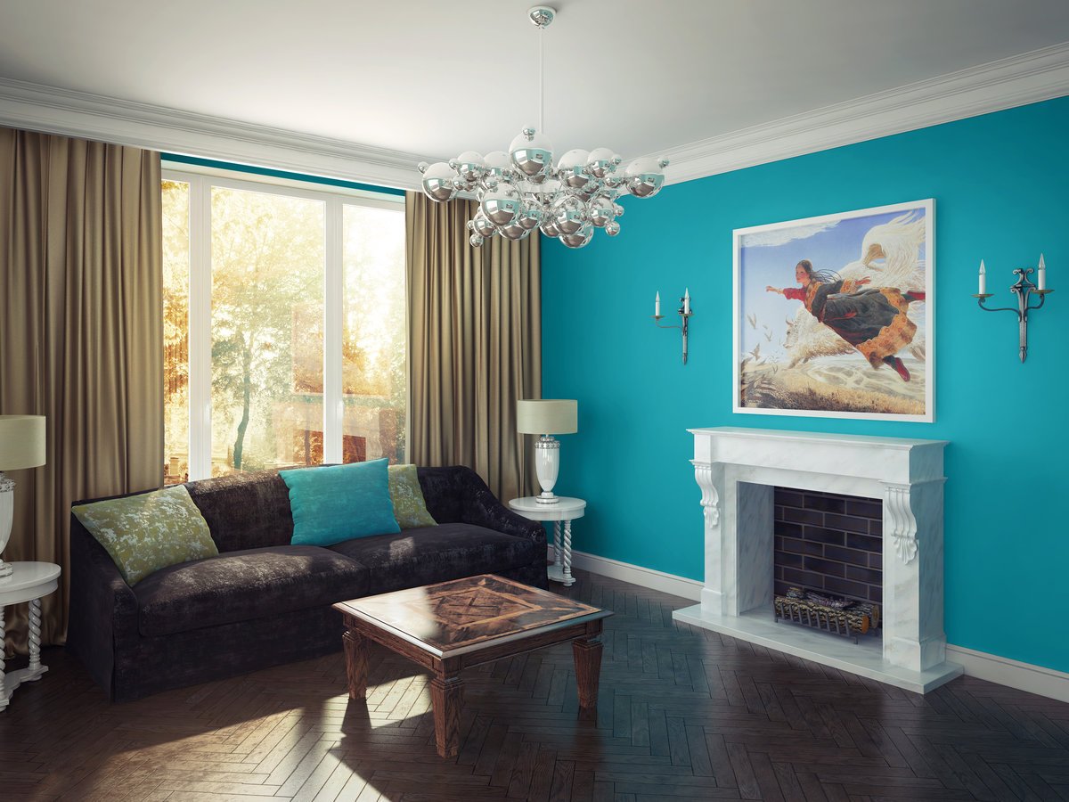 Гостиная в бирюзовом цвете