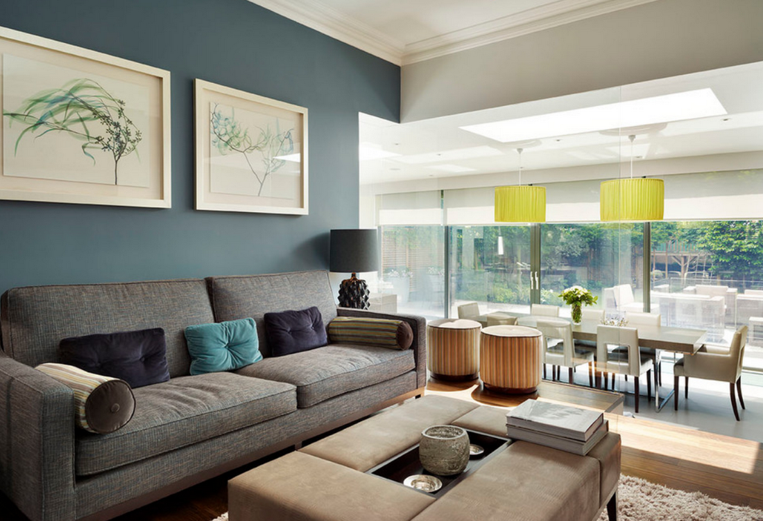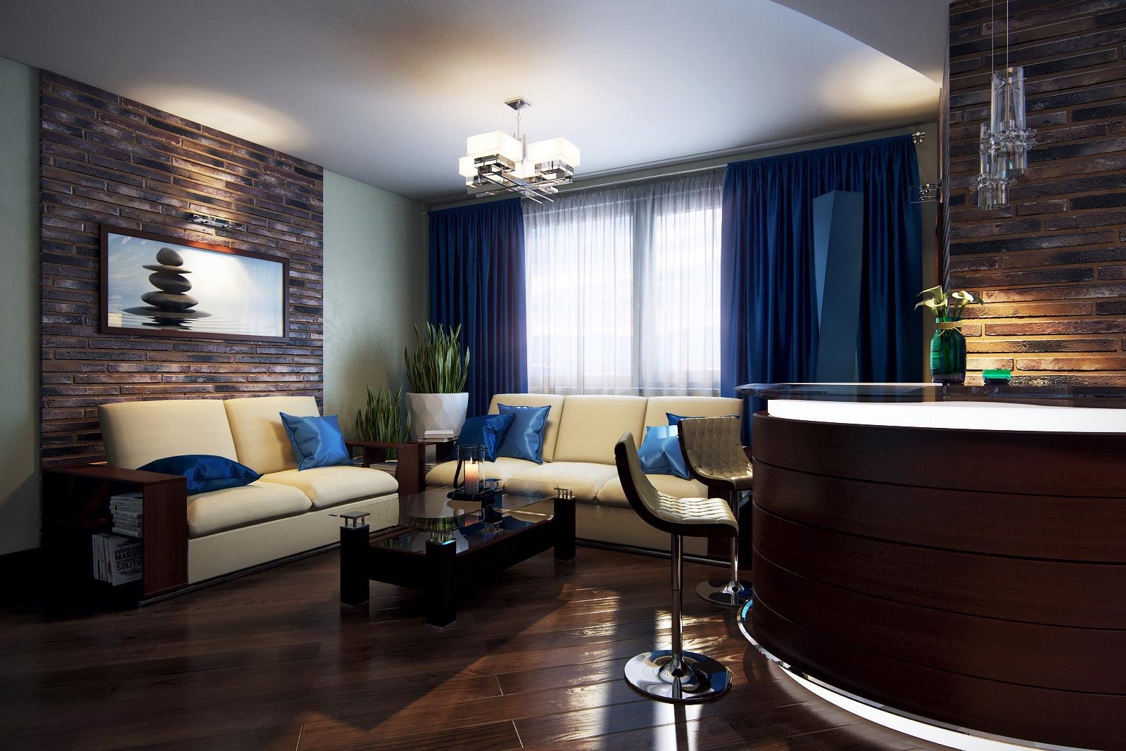 Гостиная в синих тонах в современном стиле