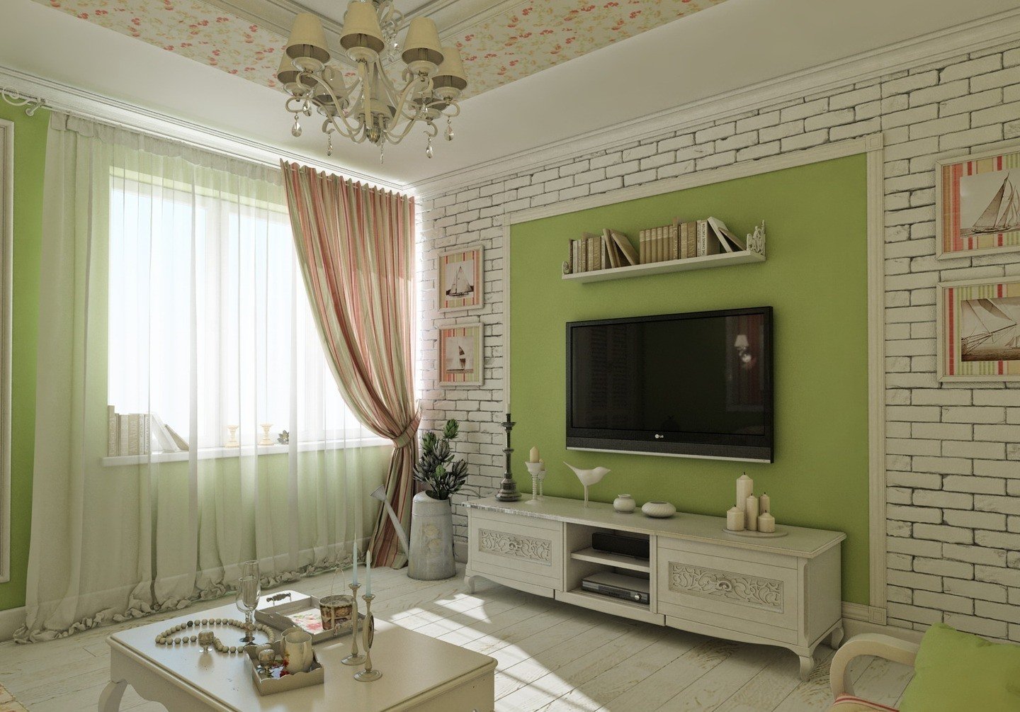 Фисташковый цвет в интерьере гостиной