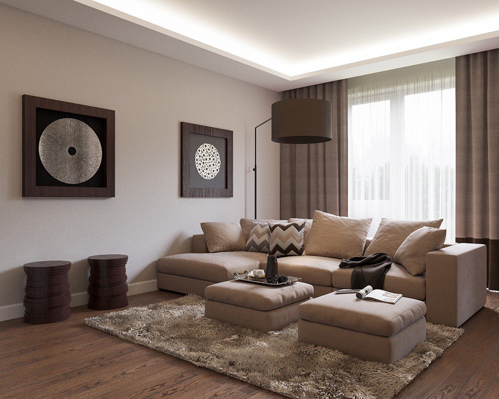 Гостиная в бежево коричневых тонах