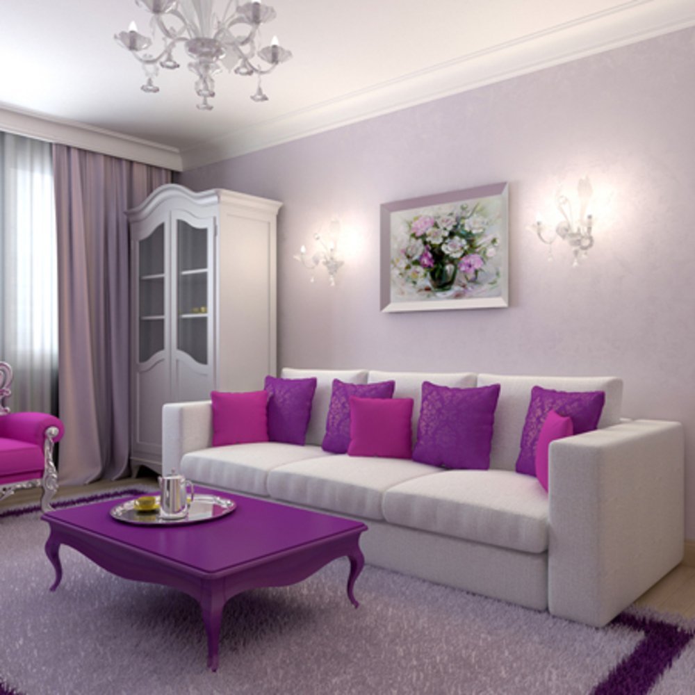 Фиолетовый в интерьере гостиной