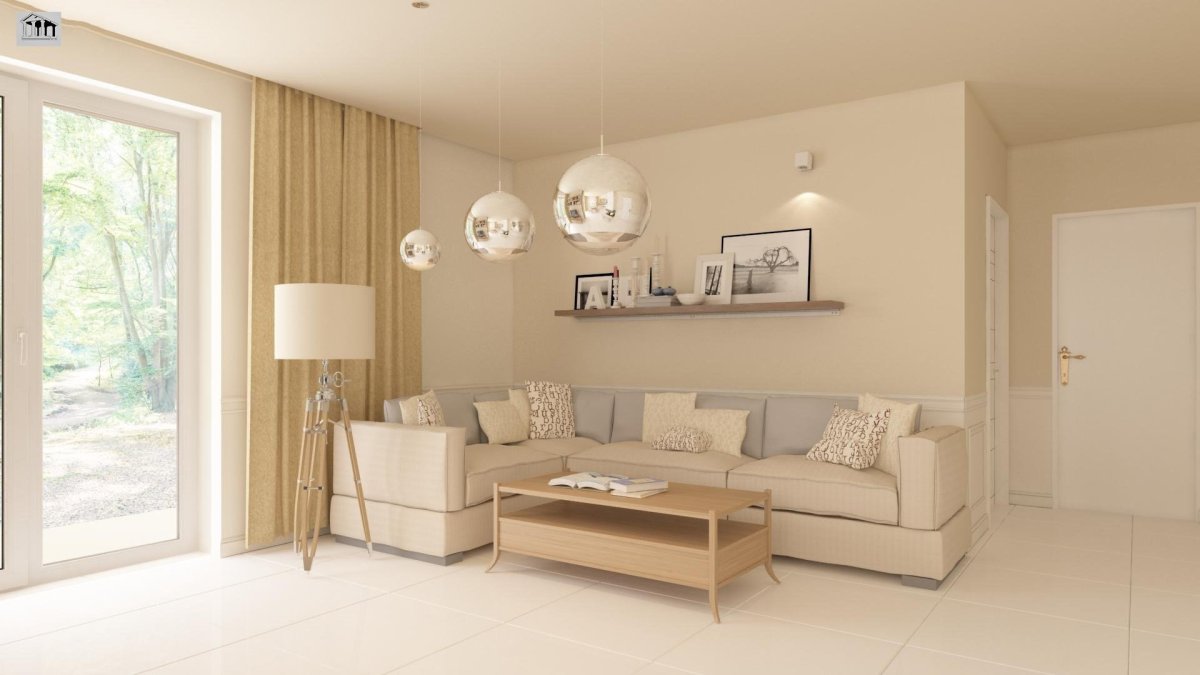 Гостиная с бежевыми стенами