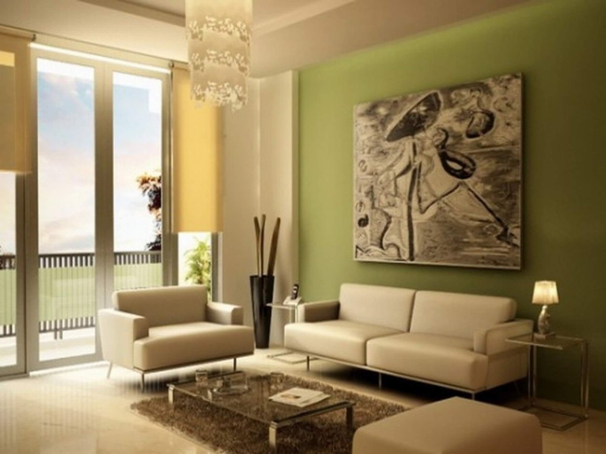 Оливковые стены в гостиной