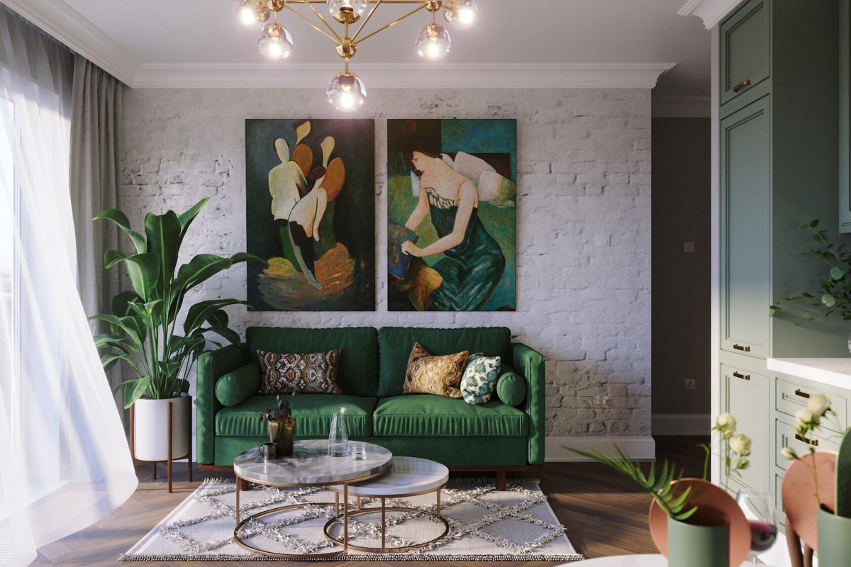 Гостиная в зеленых тонах