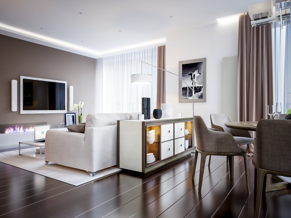 Темный пол и светлые стены в интерьере
