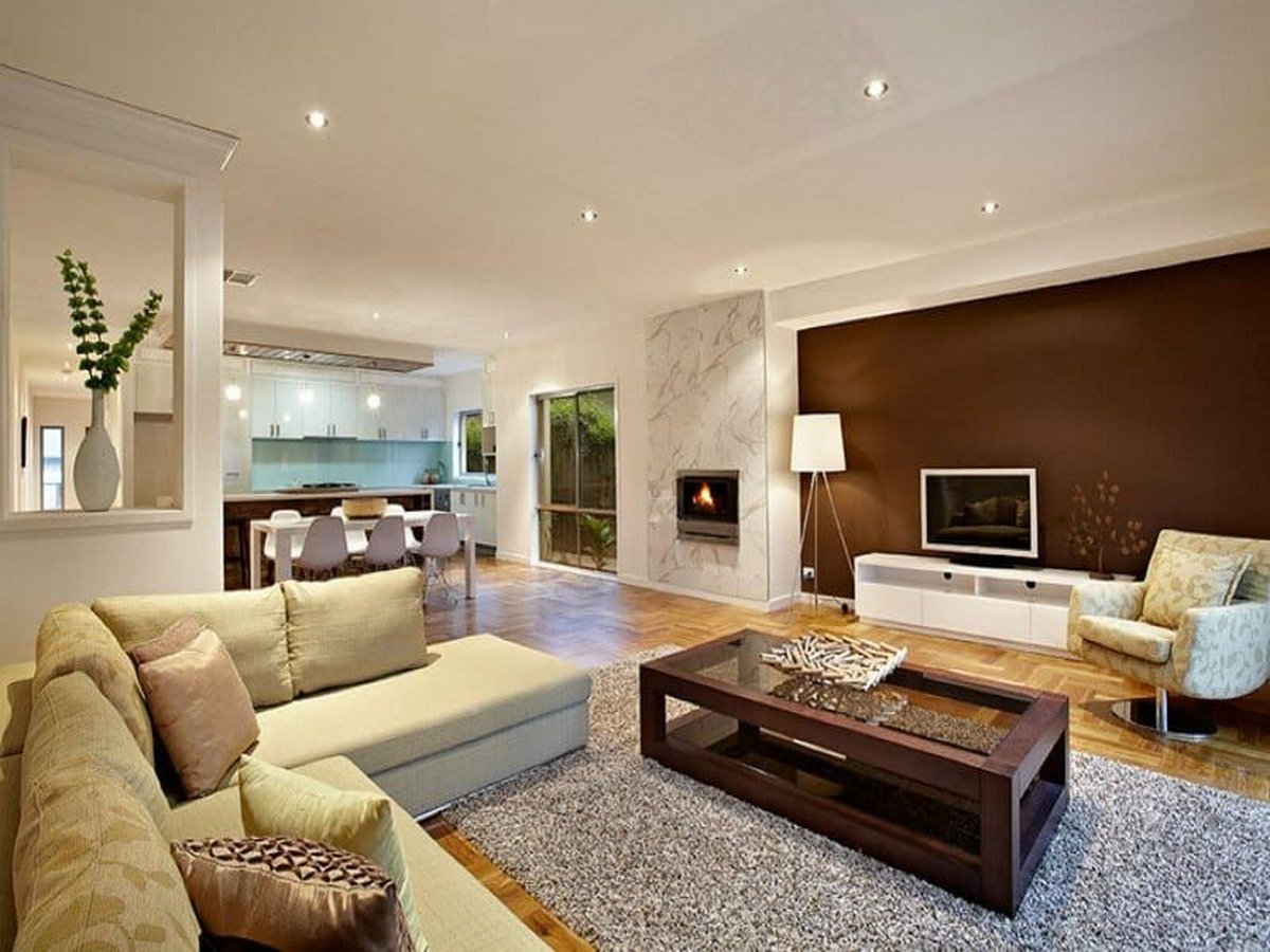 Коричневые стены в интерьере гостиной