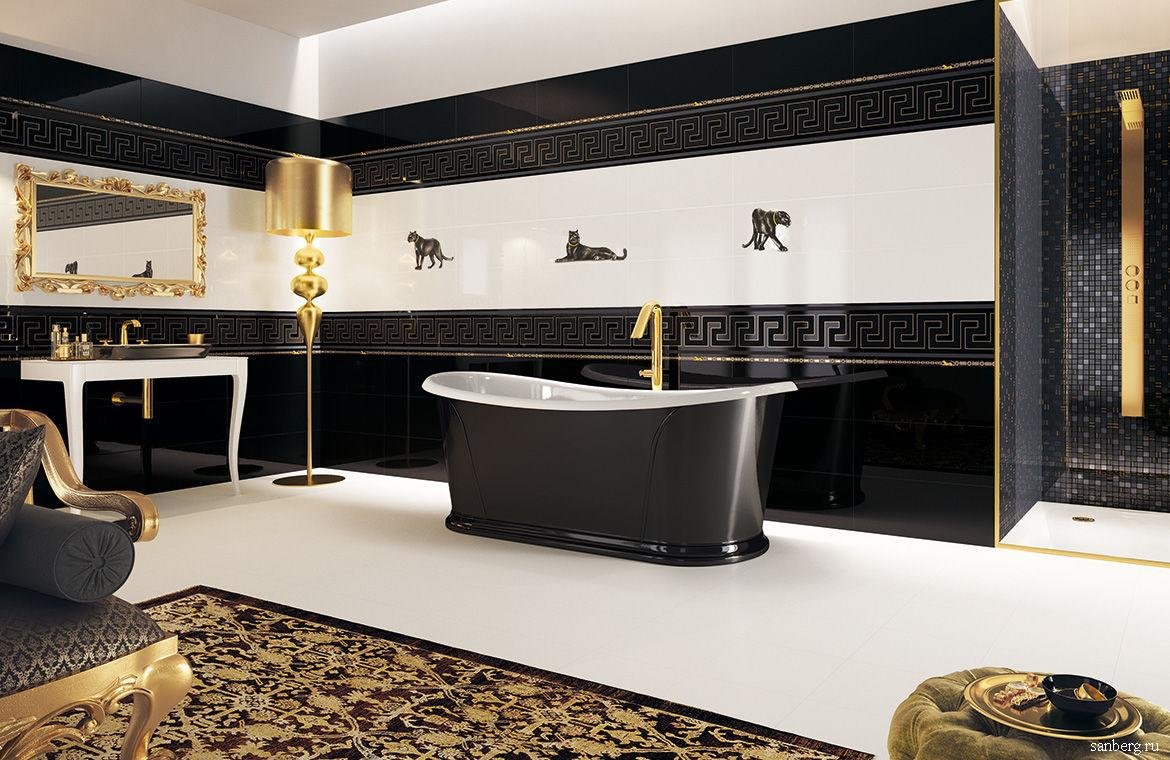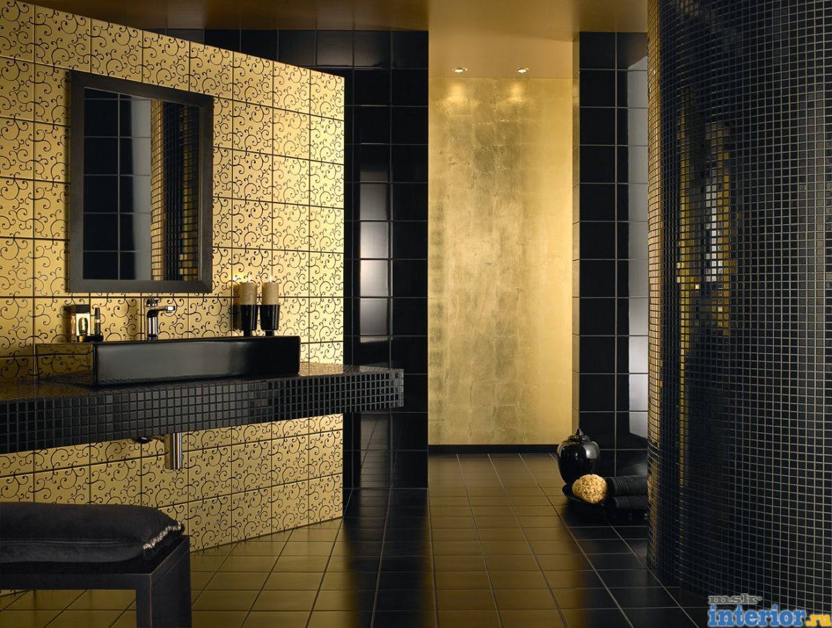 Плитка в ванную черная с золотом