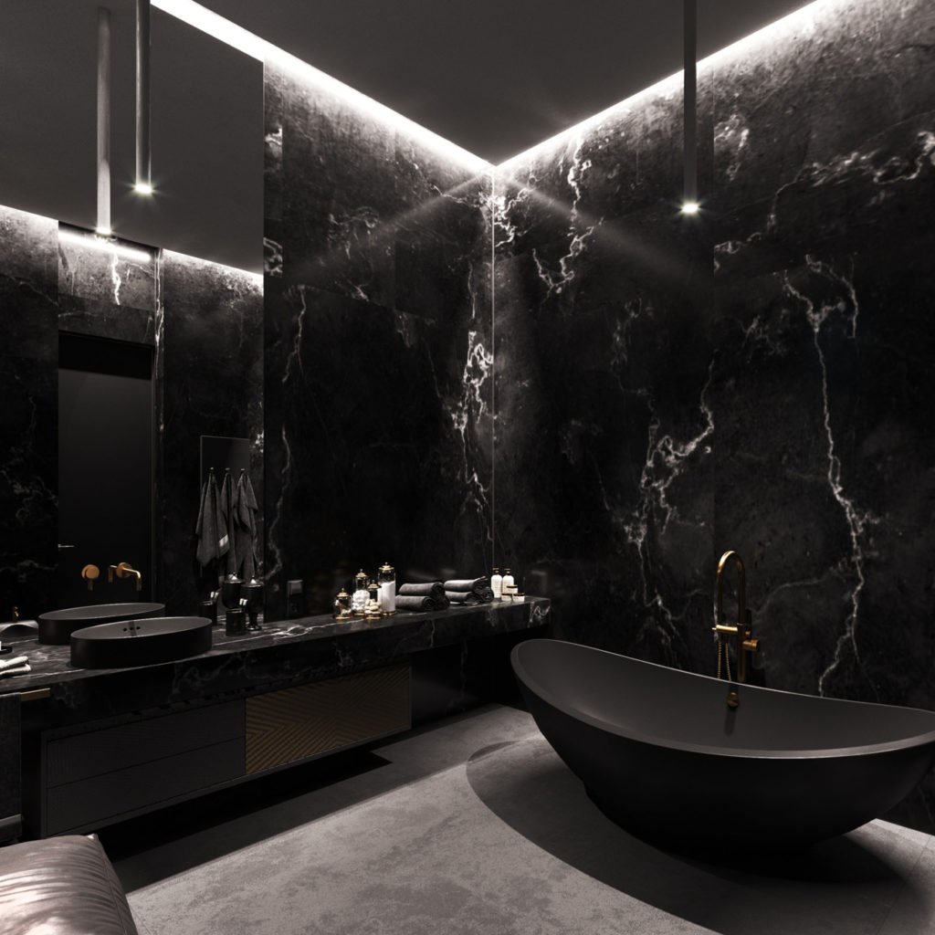 Черная мраморная ванная комната