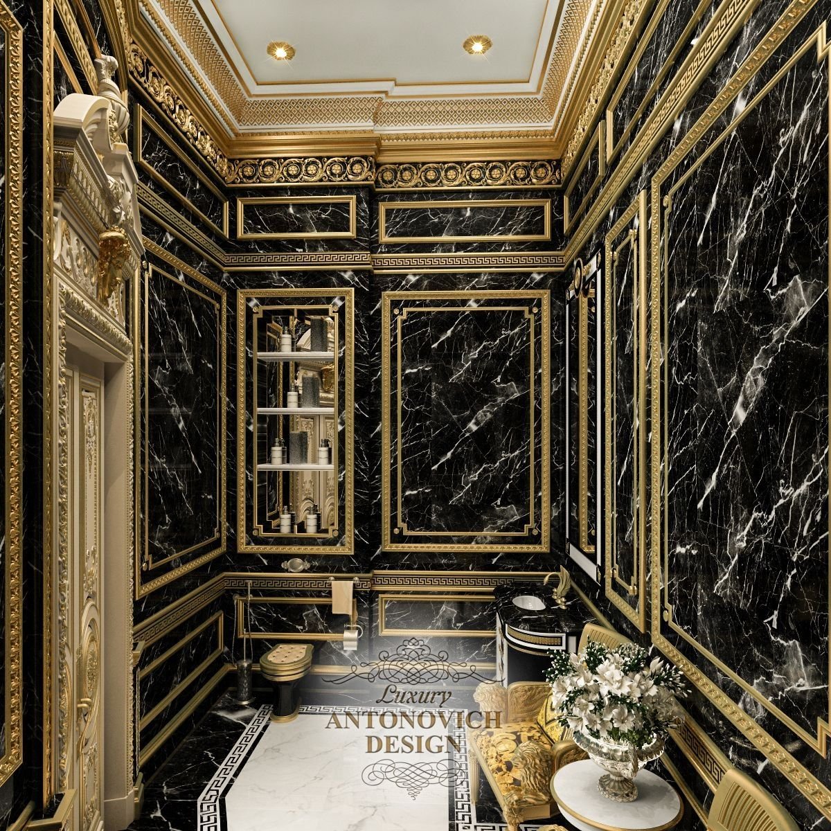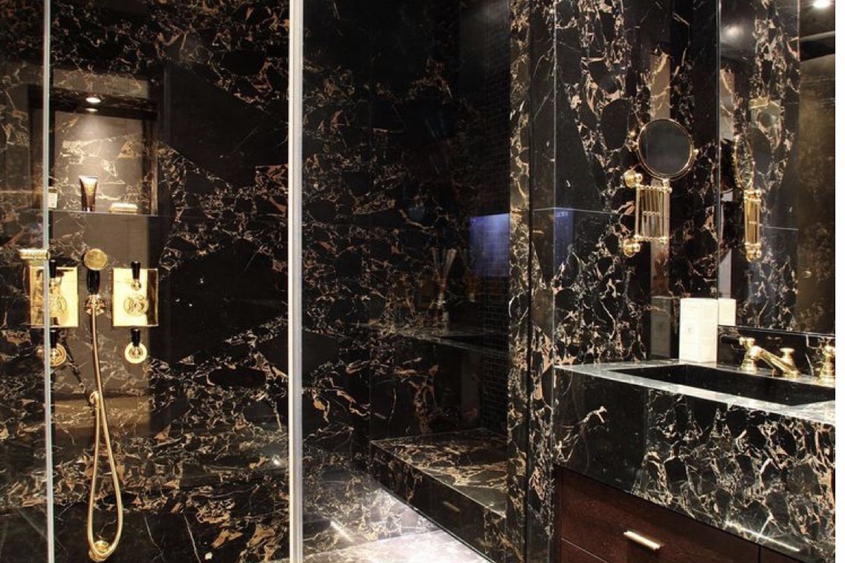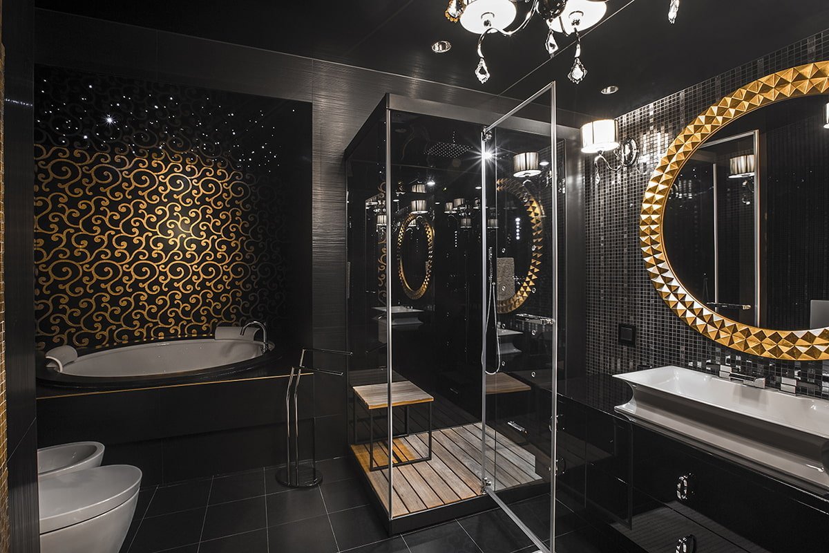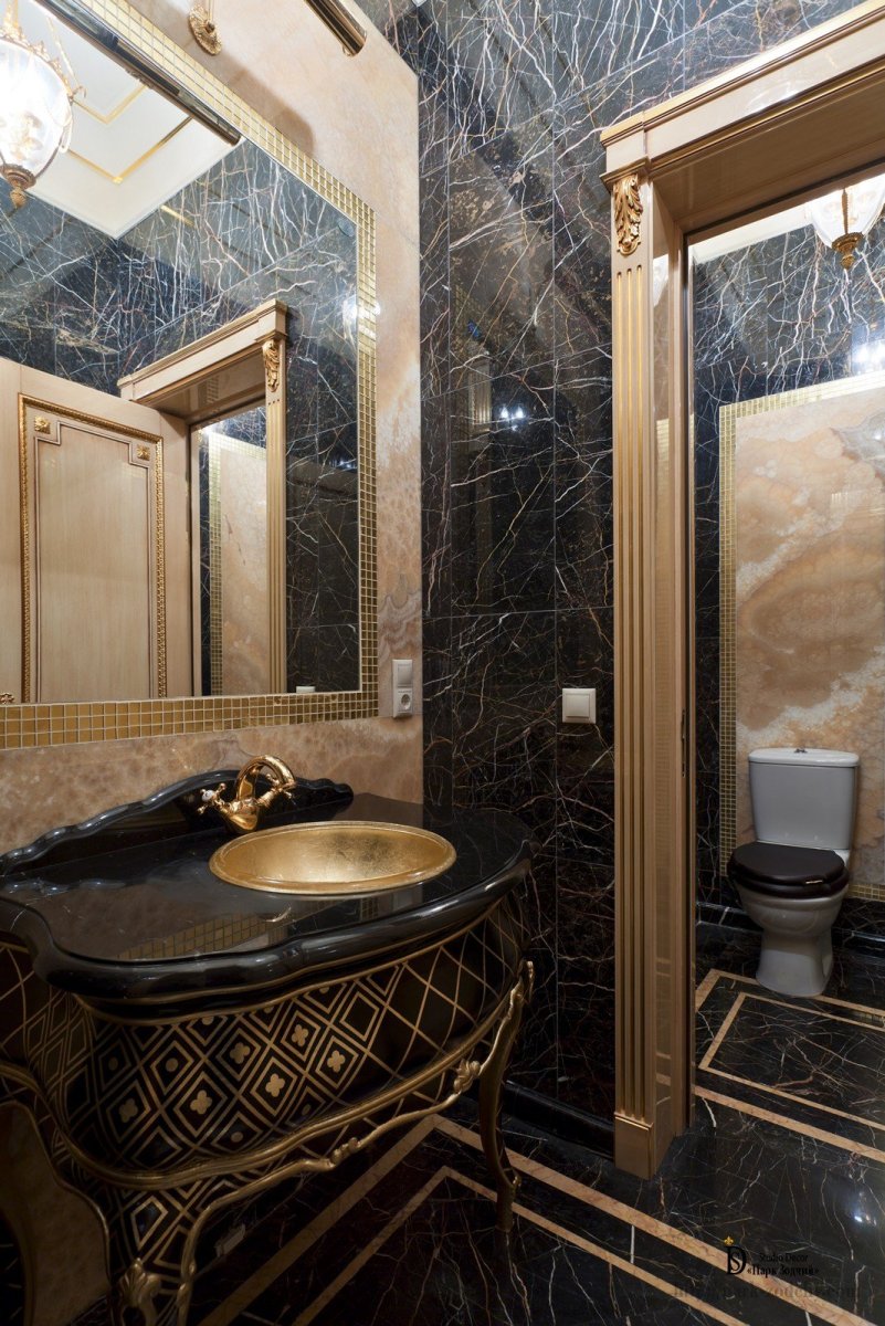 Ванная в черно золотом стиле