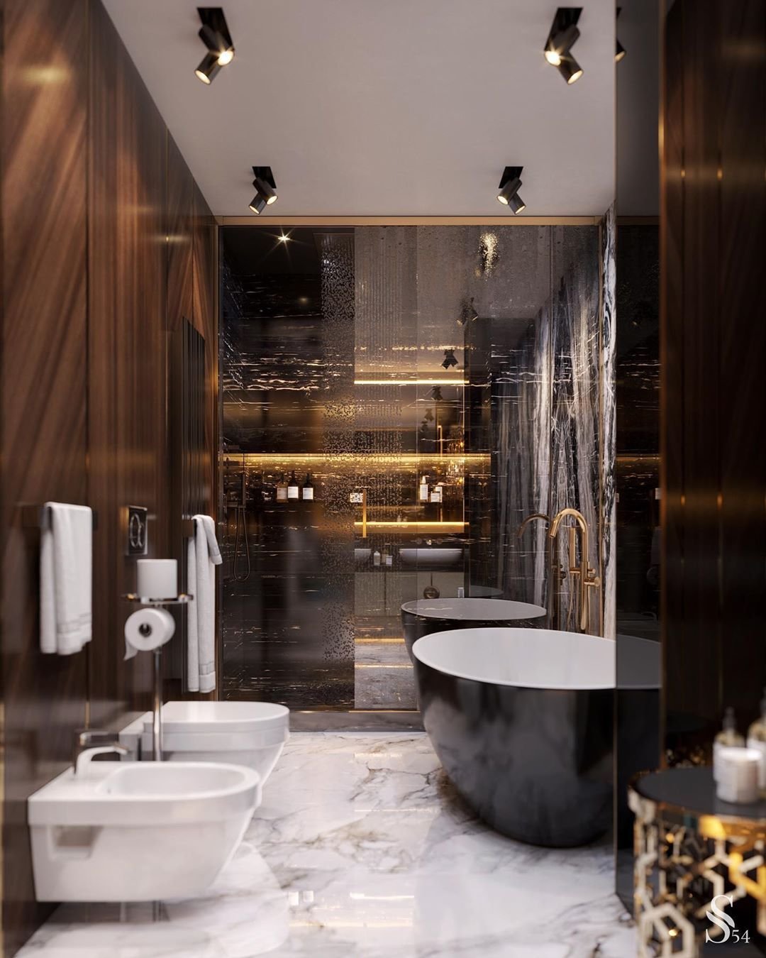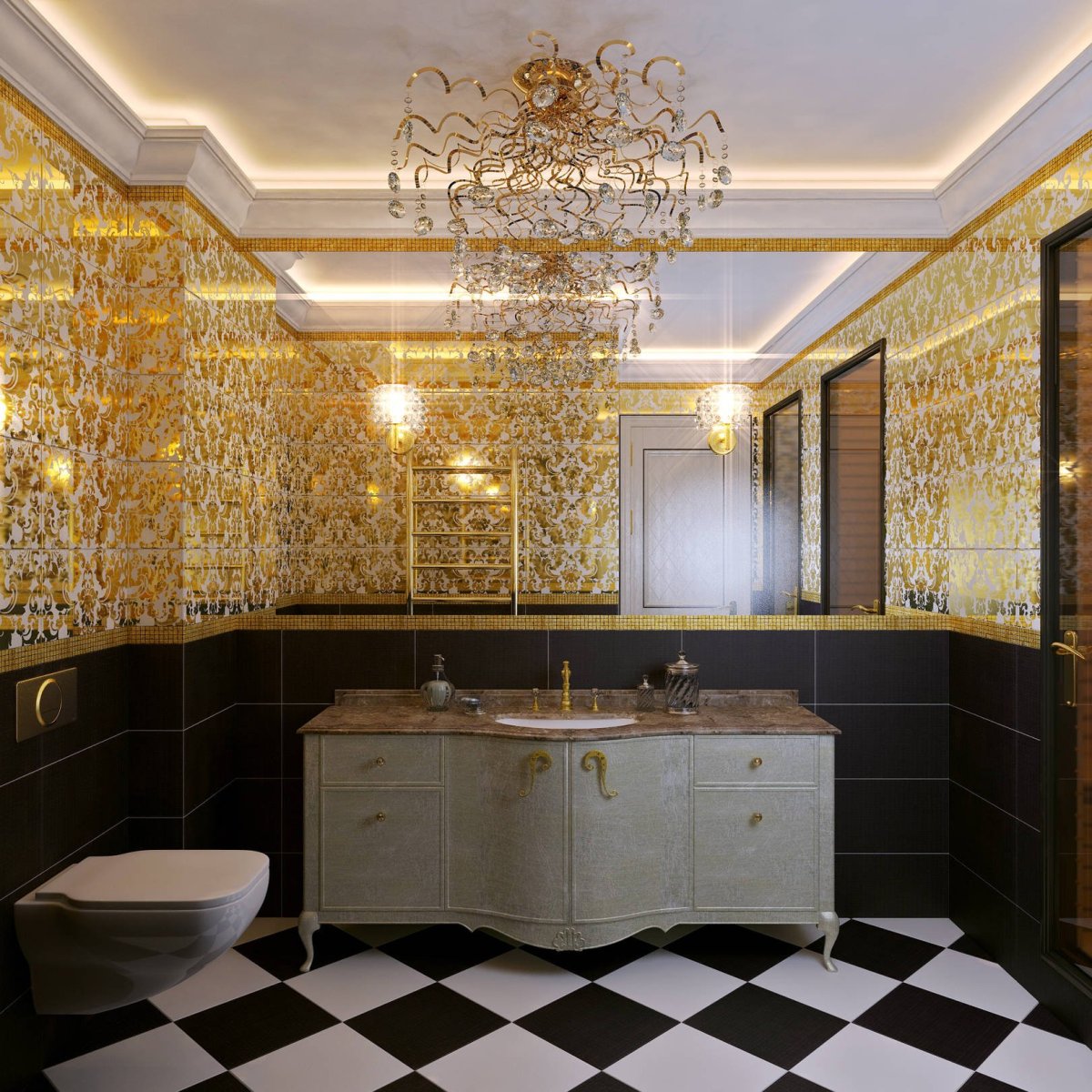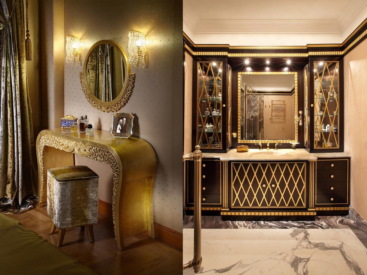 Ванная в черно золотом стиле
