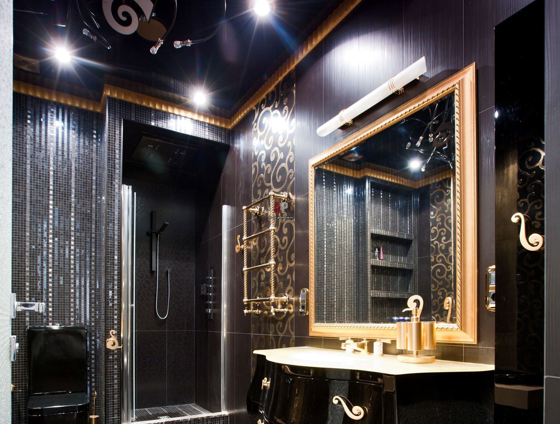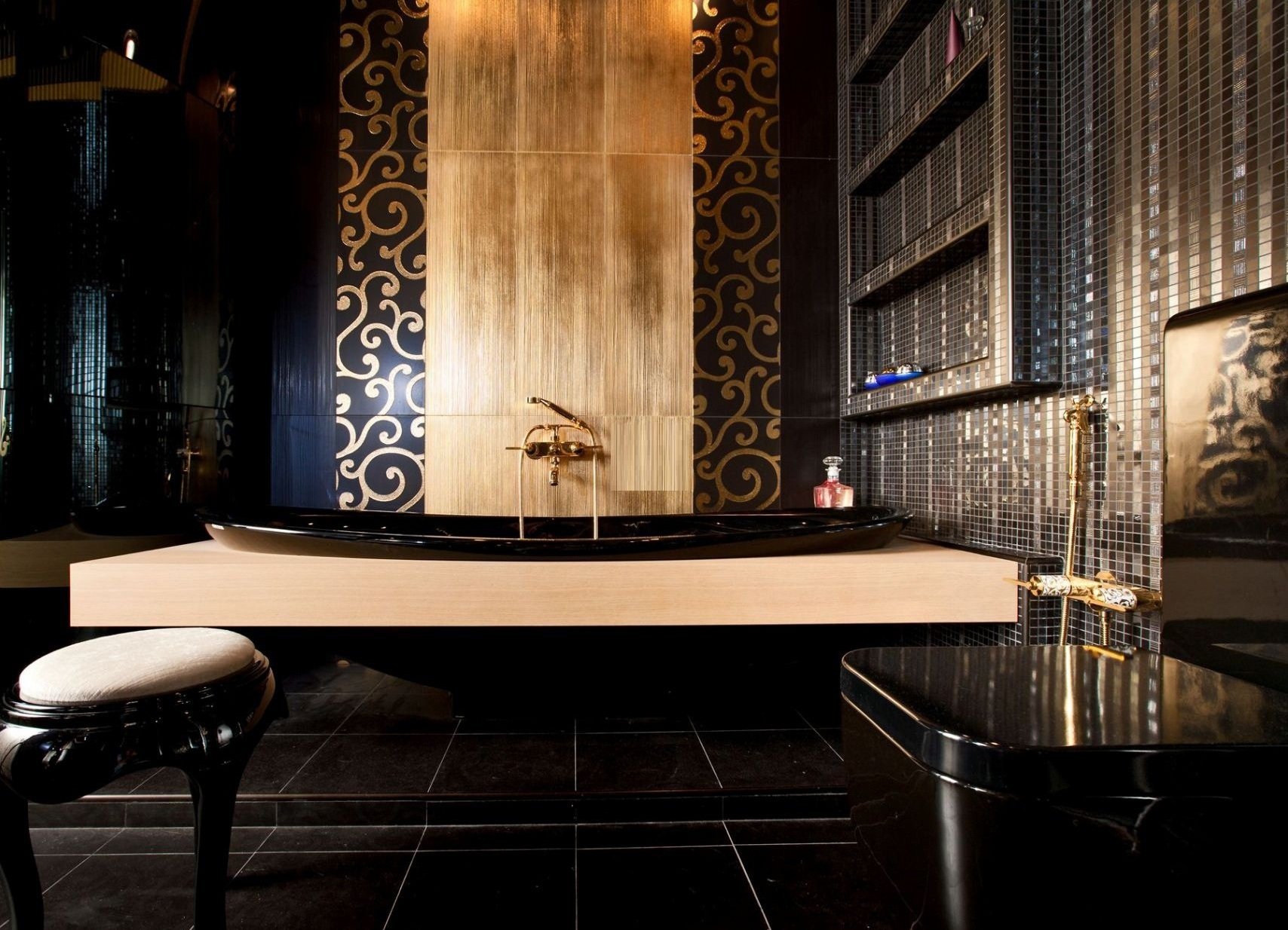 Ванная черная с золотом