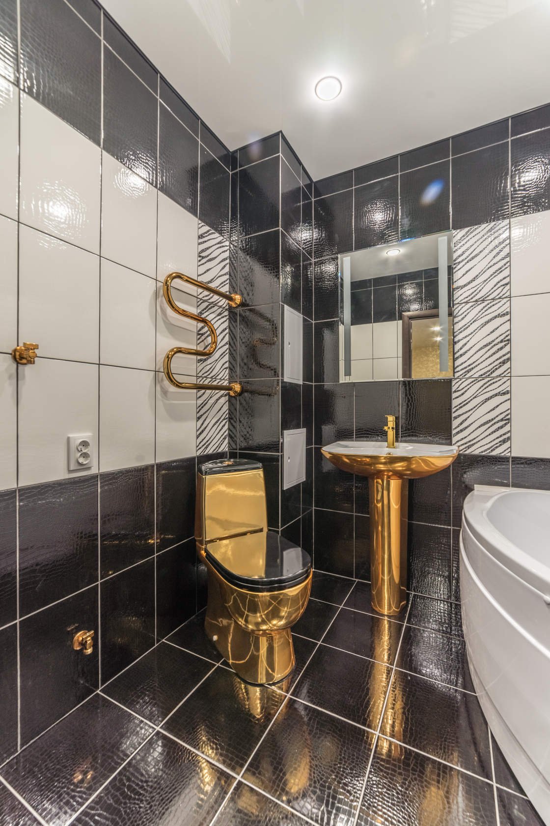 Ванная черно белая с золотом