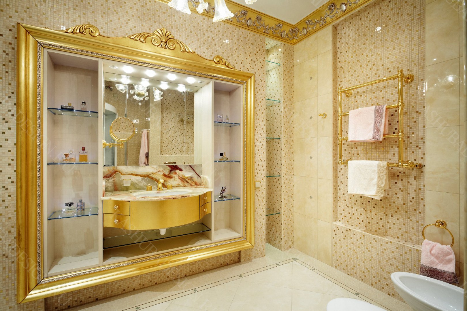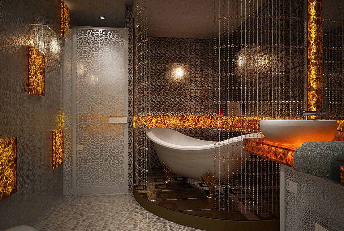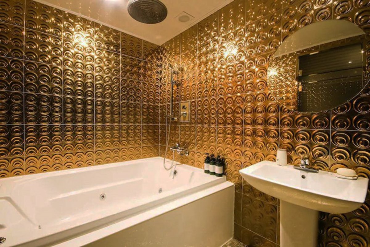 Ванная с золотой мозаикой