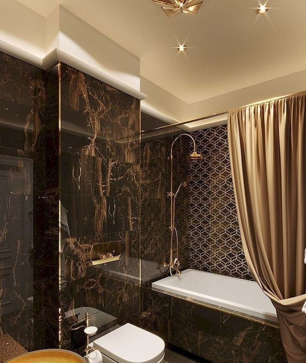 Коричневая с золотом ванная комната