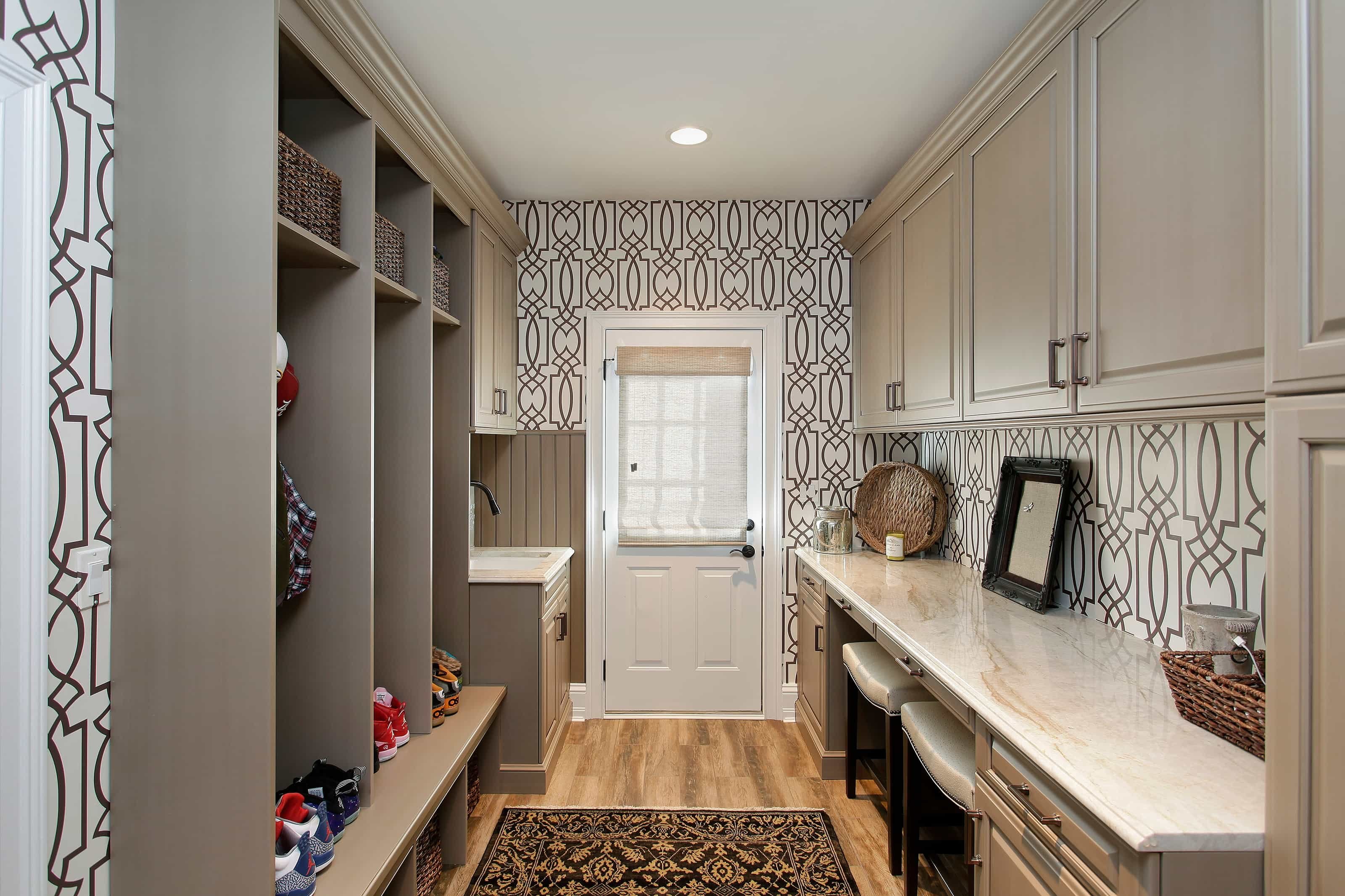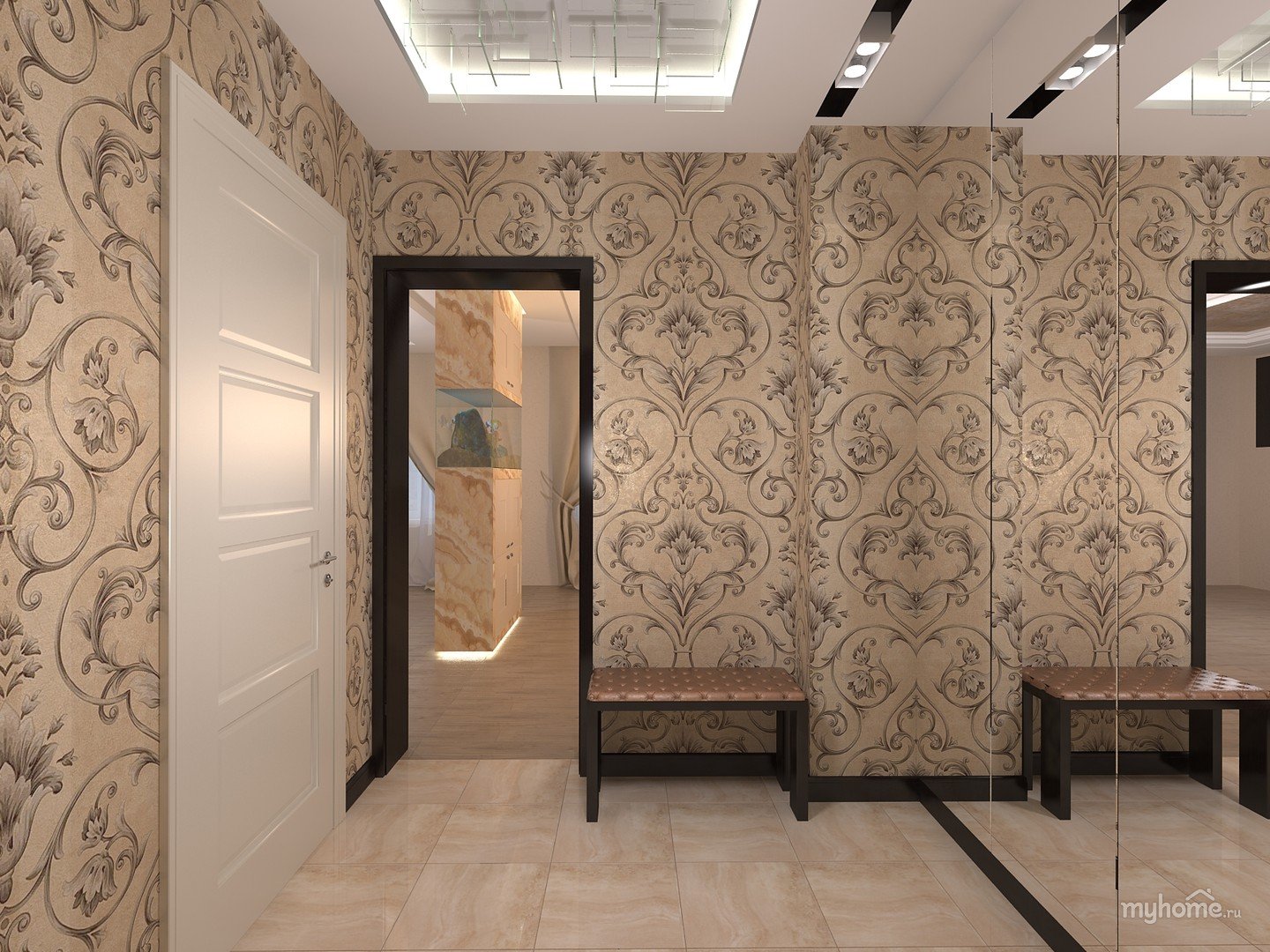 Обои с вензелями в интерьере прихожей
