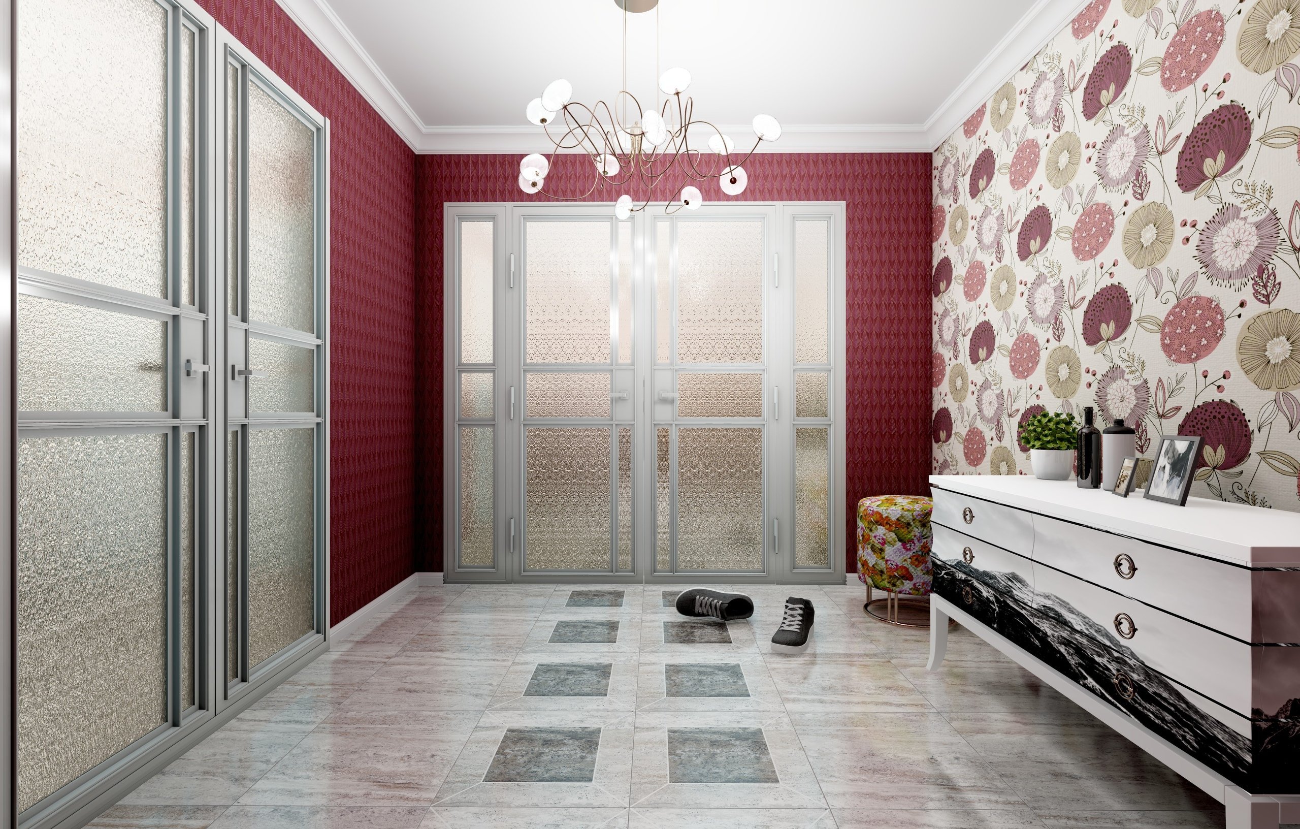 Прихожая с цветочными обоями