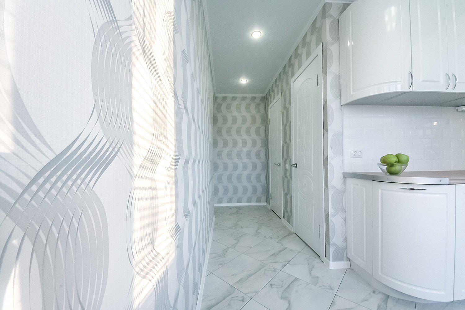 Обои для кухни и коридора в одном стиле