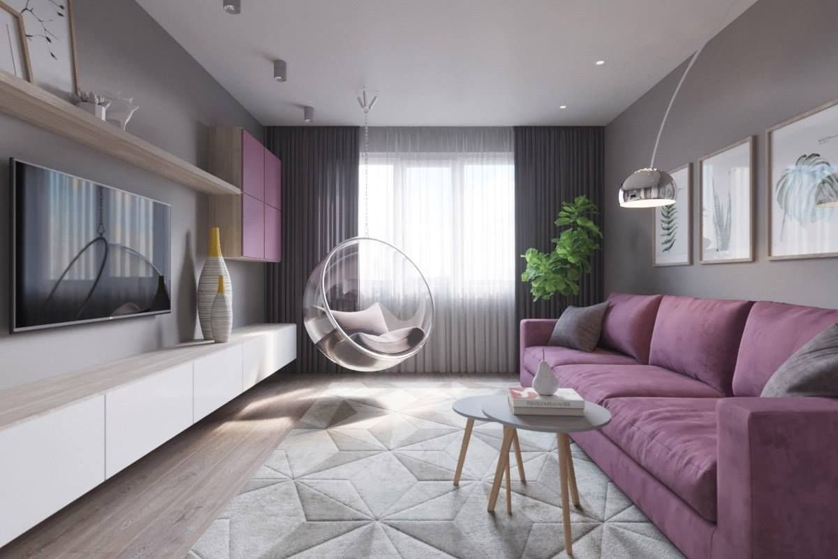 Зал в серо фиолетовых тонах