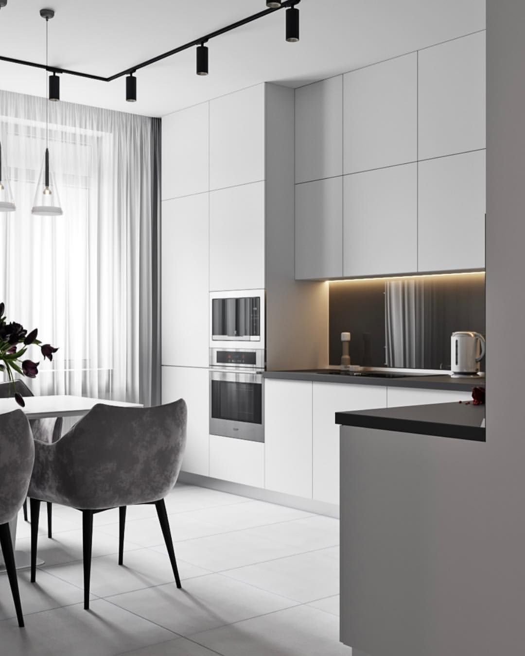 Интерьер кухни в бело серых тонах