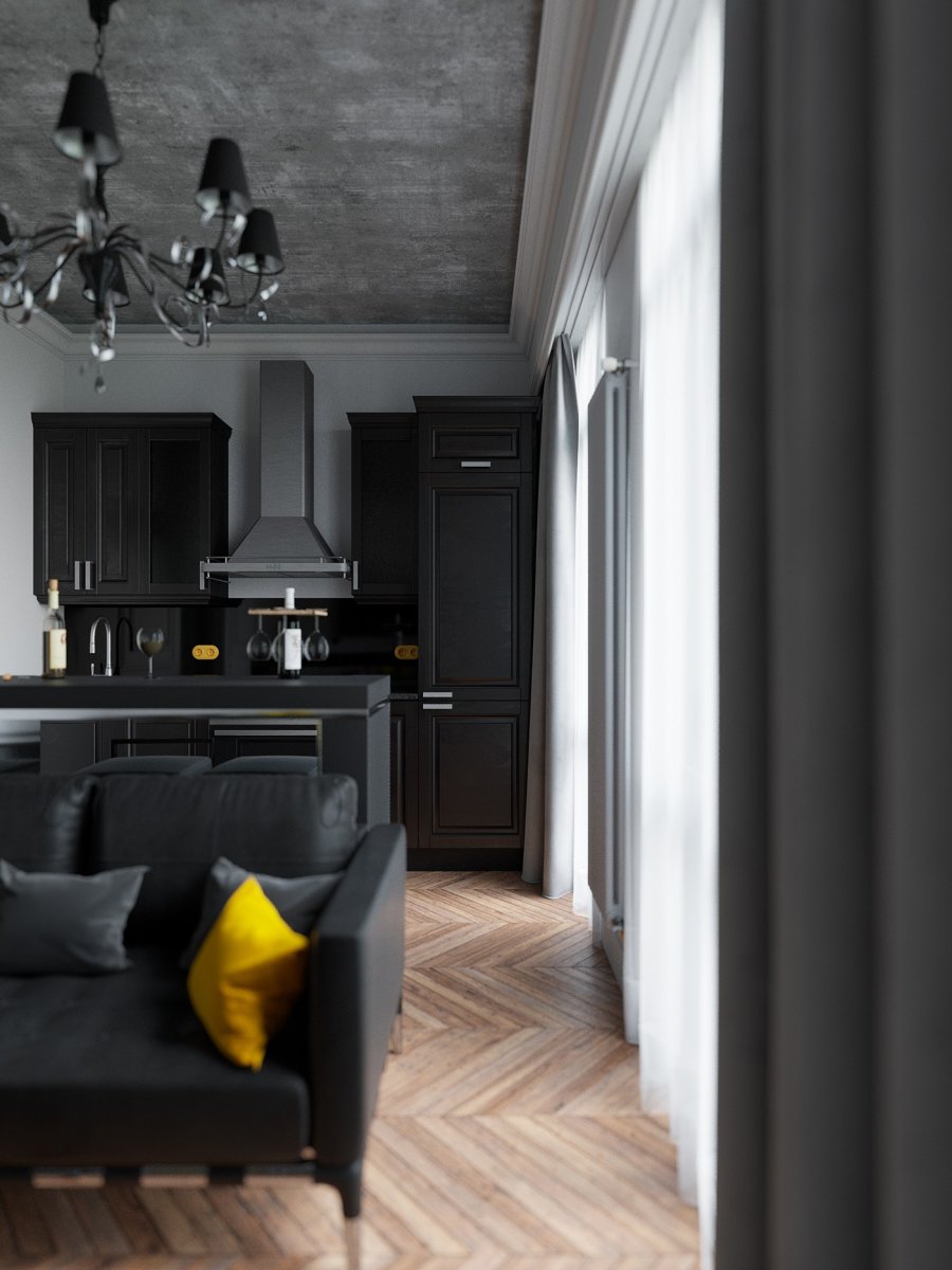 Квартира студия в черных тонах