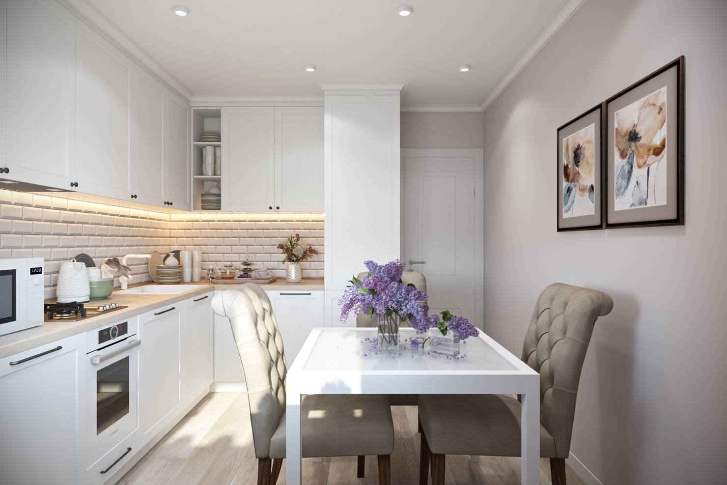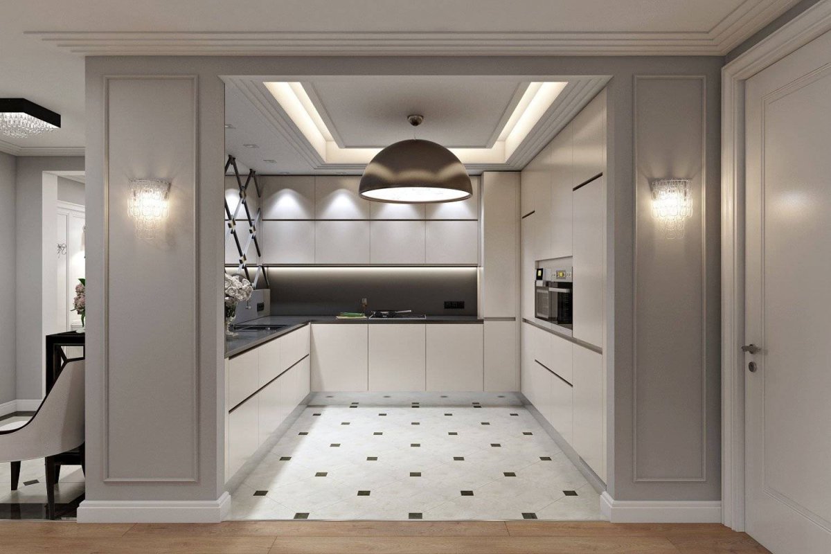 Белая кухня в нише