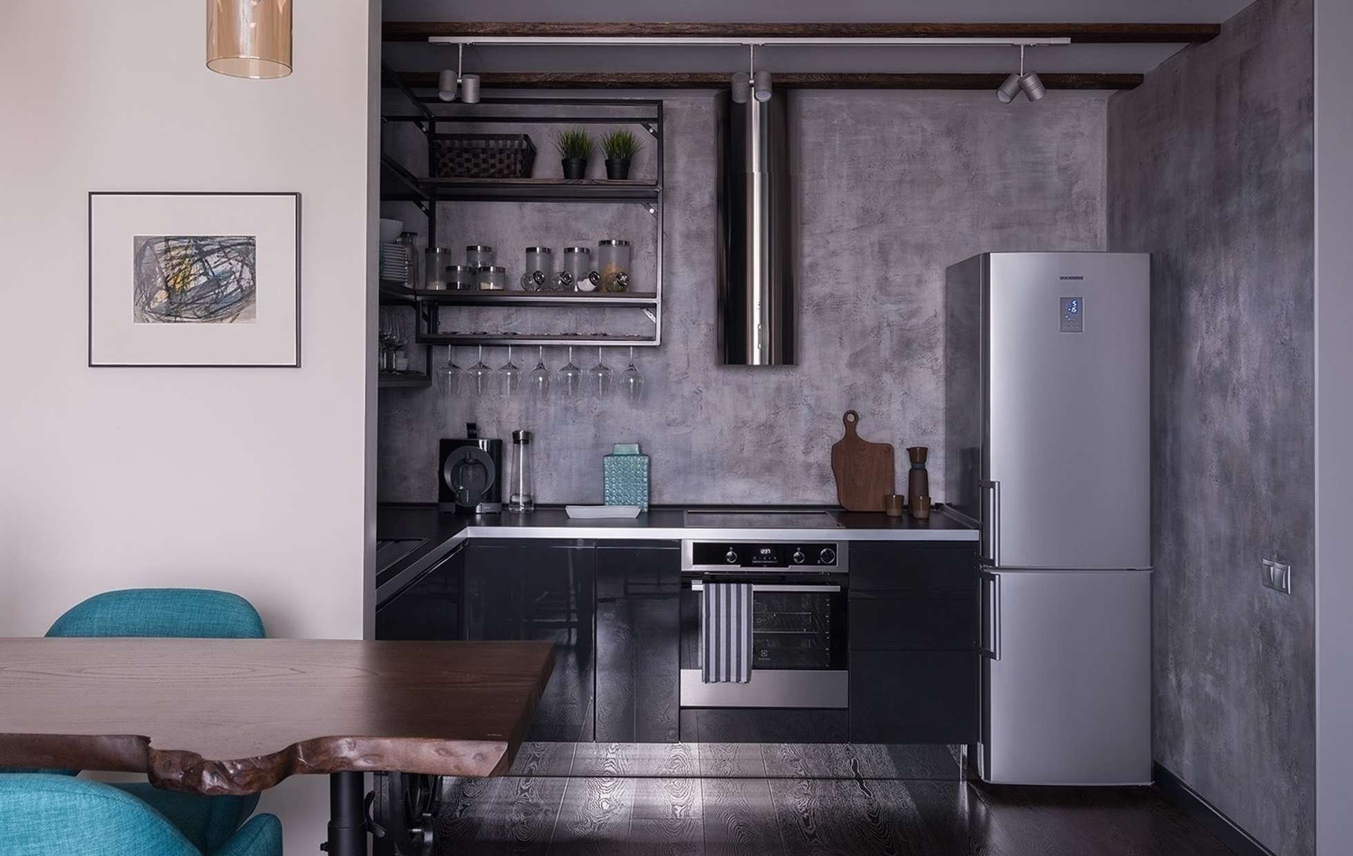 Маленькая кухня в стиле лофт серая