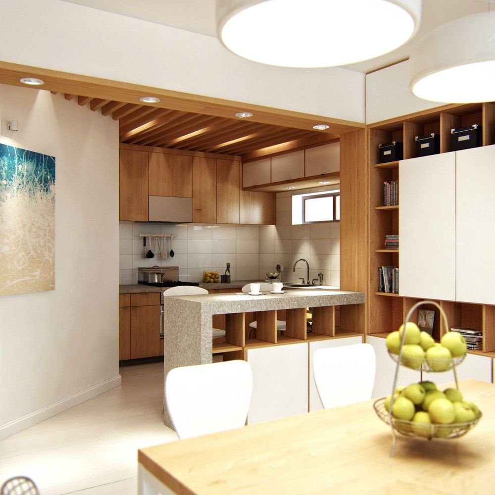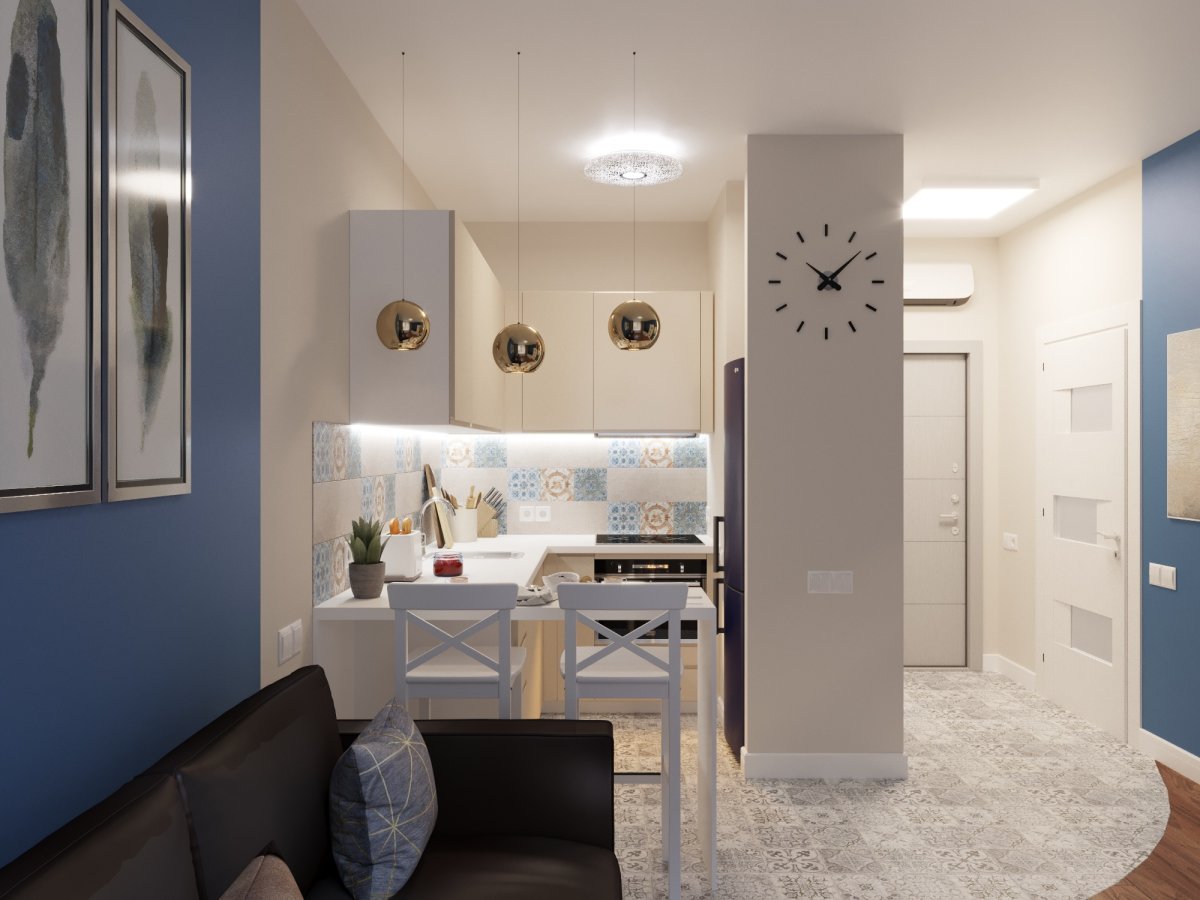 Зонирование кухни в студии 30 кв.м