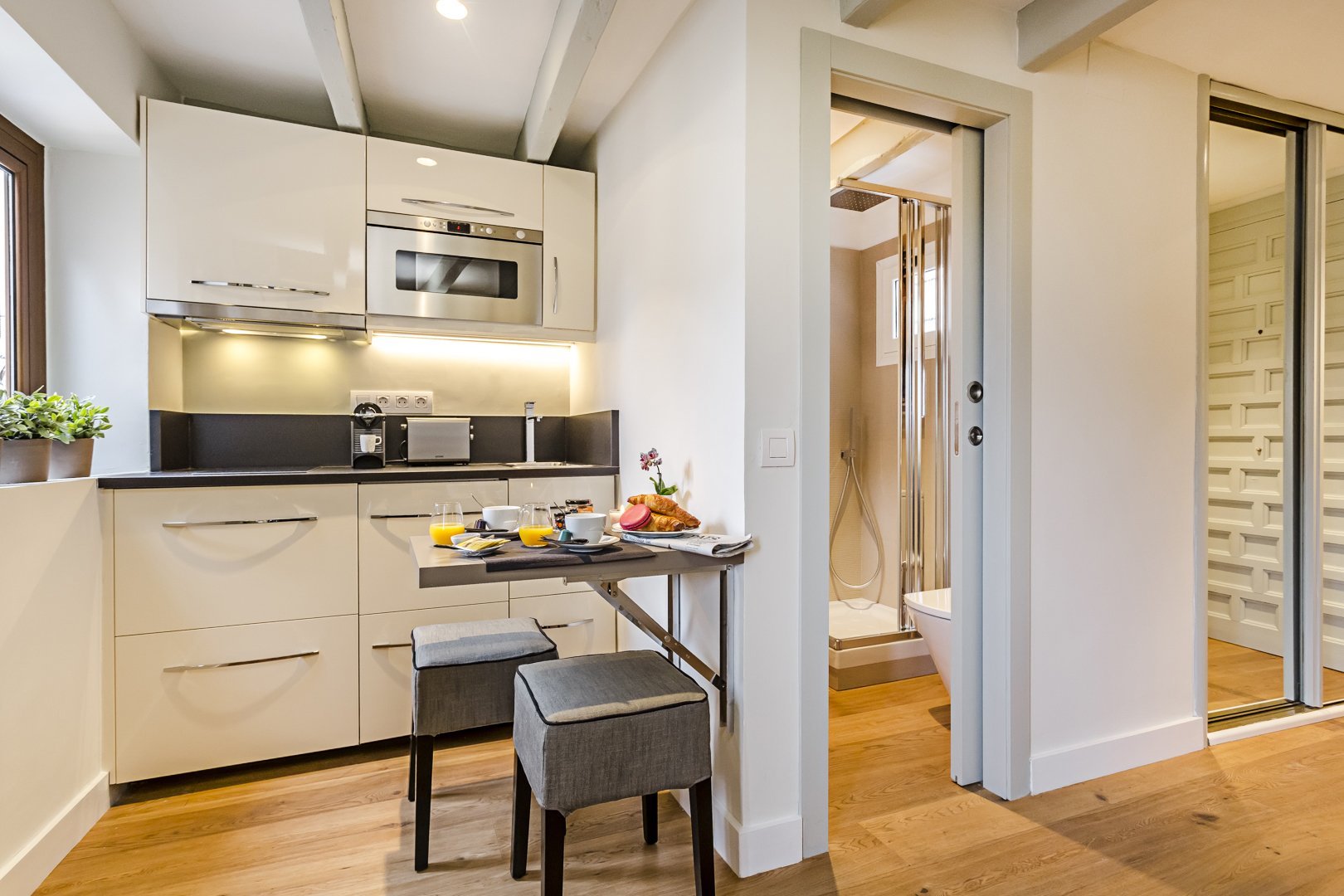 Зонирование кухни в студии 28 кв.м